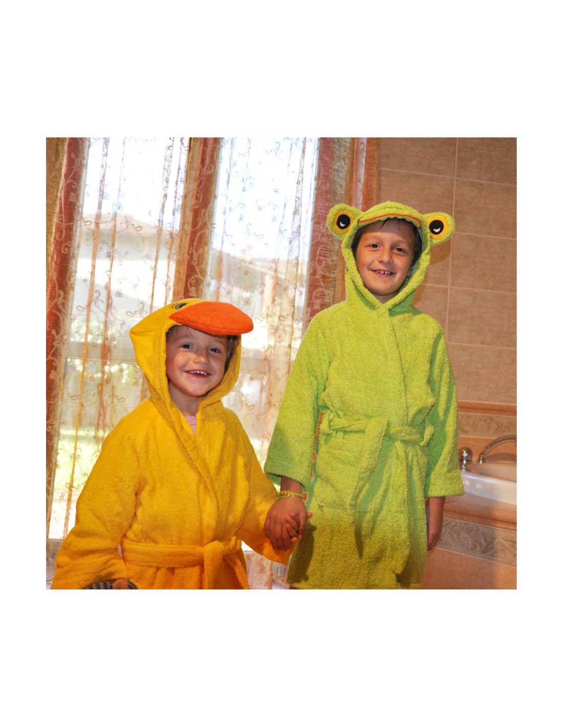 Ein lustiges und besonderes Produkt, weich und saugfähig, mit schöner Verarbeitung auf der Kapuze, die eine Ente reproduziert ..