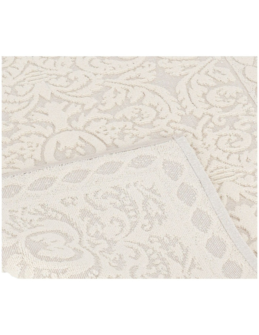 DOUBLE FACE: Saugfähige Badematte aus einer Baumwollmischung, die mit der Schwammverarbeitung hergestellt wird, bei der sich die Locken mit der glatten Textur abwechseln und das geprägte Design erzeugen, das auch auf der Rückseite fertig und schön ist, so dass Sie es auf beiden Seiten verwenden können. Raffiniert und elegant dank der sanften Farben, die es leicht zu kombinieren machen..