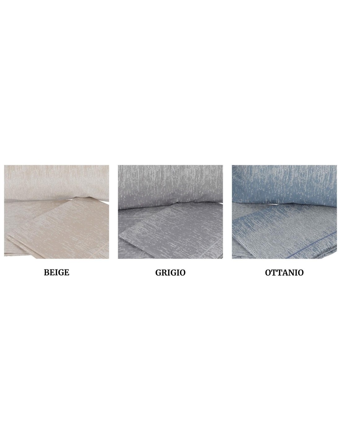 Die Größe 1 Quadrat und eine Hälfte beinhaltet: 1 Blatt unten mit elastischen Ecken 140x200 cm, 1 Blatt oben 180x280 cm und 1 Kissenbezug 50x80 cm. mit Knöpfen..