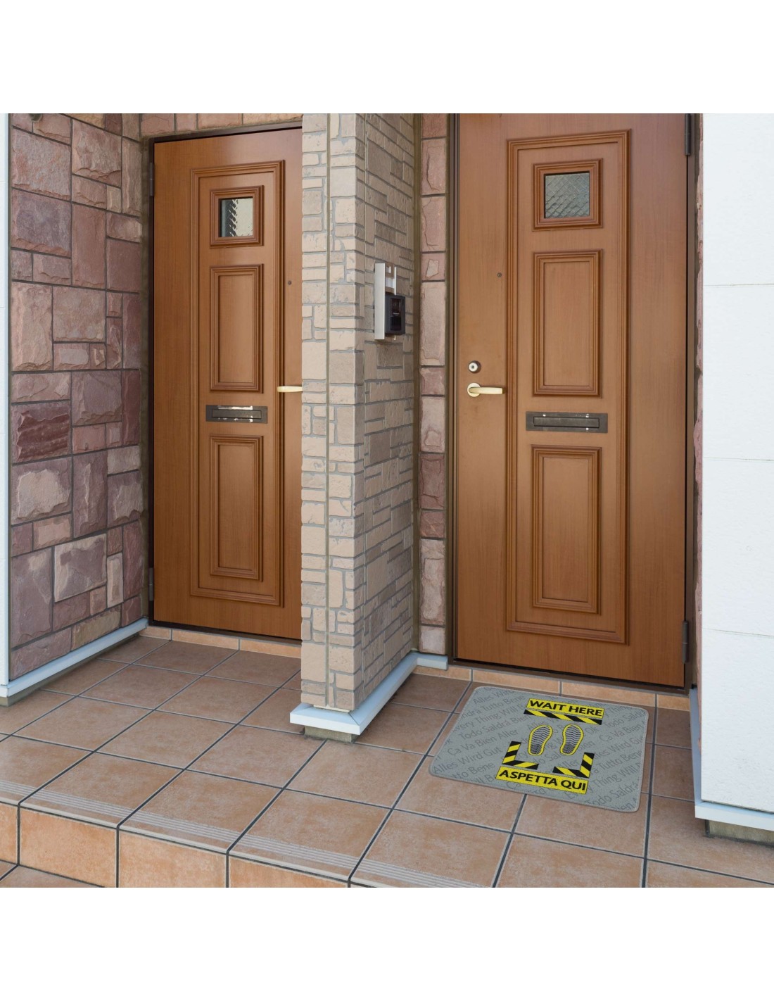 Fußmatte Eingangsmatte 62x57 cm. WARTEN SIE HIER GELB