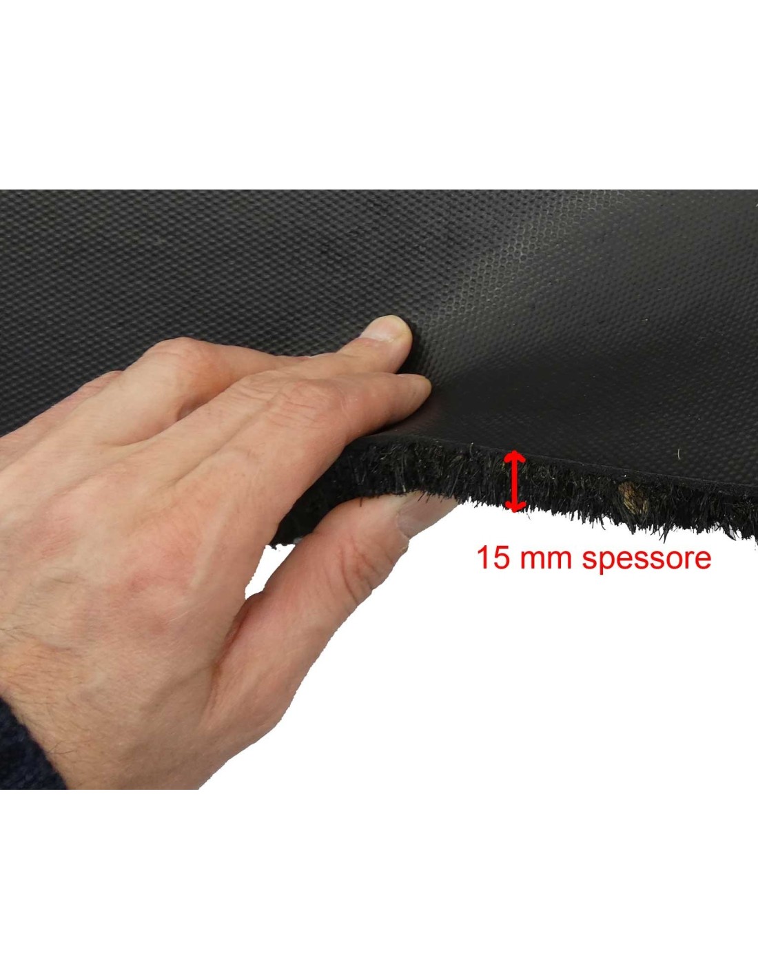 100% Kokosmatte mit PVC-Boden ca. 15 mm hoch gedruckt.