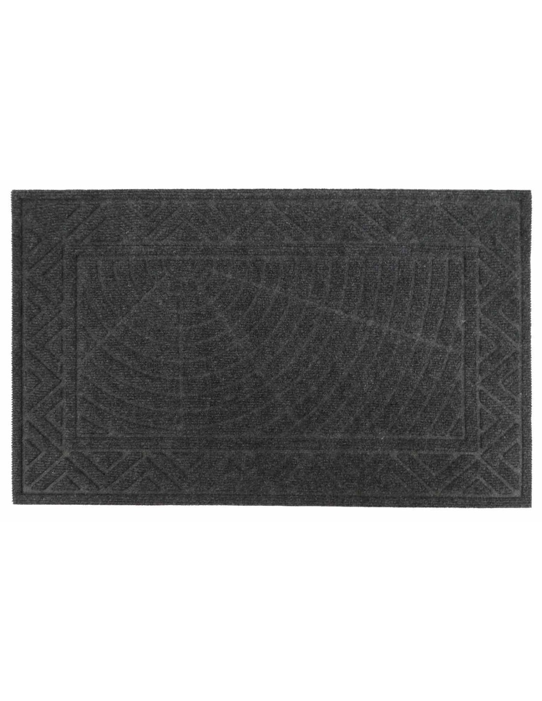Eingangstürmatte aus Gummi und Polyester mit einem Relief-Design verziert, das durch den Dickenunterschied des darüber liegenden Gewebes entsteht.
