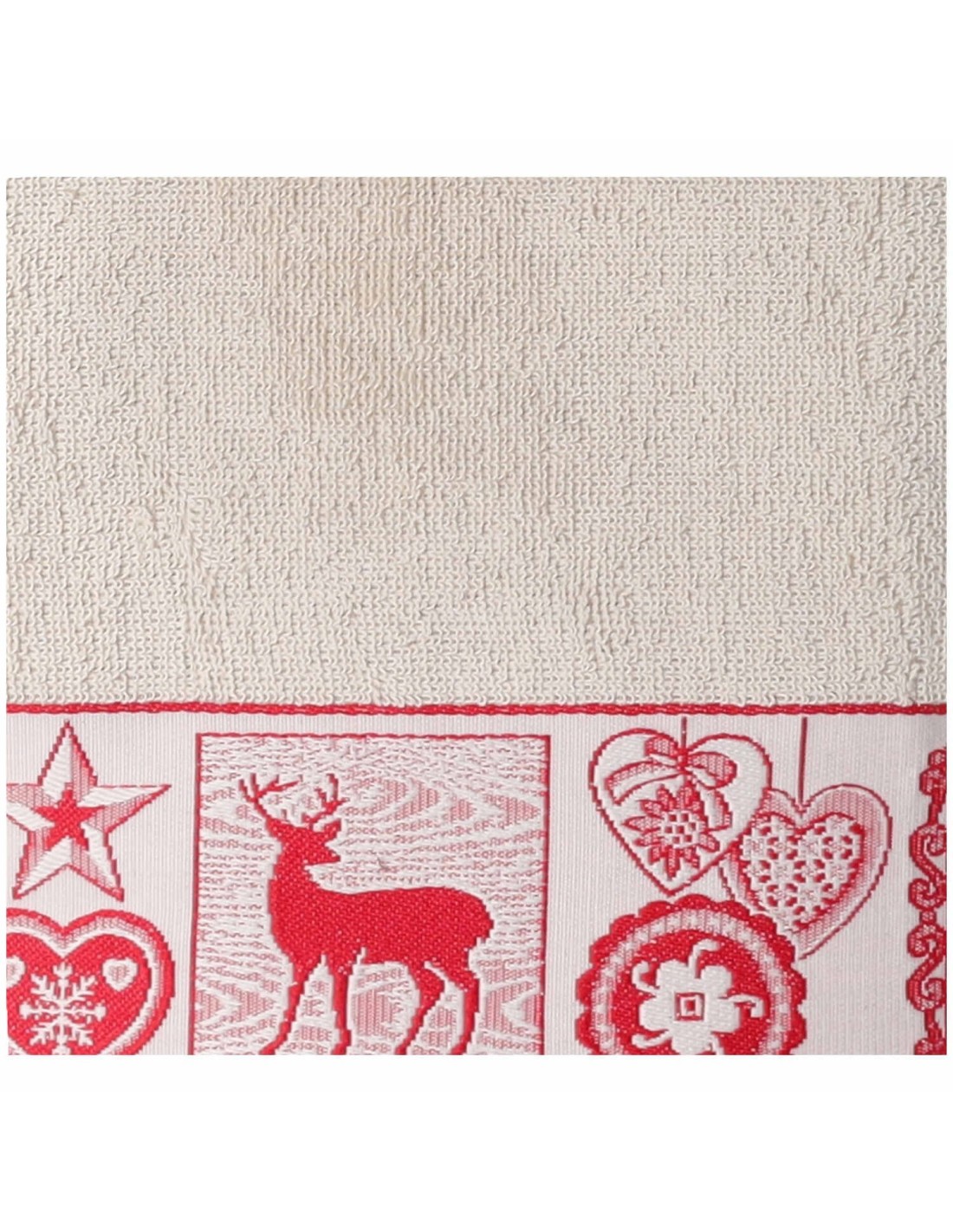 JUMP WITH DESIGN: Jedes Handtuch hat einen Volant aus Jacquard und hübsche Stickereien im Tiroler Stil.