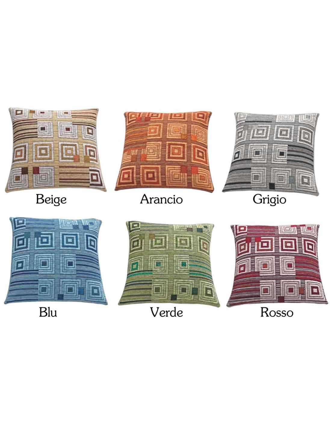 Eine originelle geometrische Fantasie, deren Design nicht gedruckt, sondern direkt in Weben erstellt wird, spielen mit Farben und kleiden Sie Ihr Sofa mit weichen Kissen, um sich auszustatten und zu freuen und gleichzeitig Ihre Momente der Entspannung noch entspannter und komfortabler zu machen.