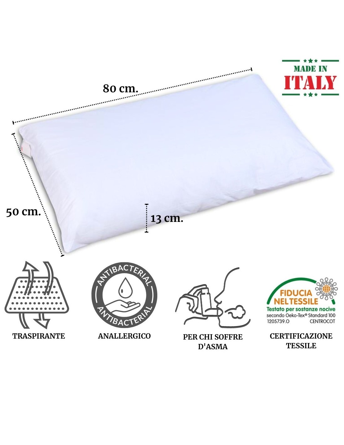 Kissen für Asthmatiker und Allergiker dank der Verwendung eines wertvollen Stoffes als Futter, das durch die Schaffung einer Barriere das Eindringen von Allergenen verhindert, und die Sensifil-Faserpolsterung enthält keine Substanzen, die allergische Reaktionen hervorrufen können.