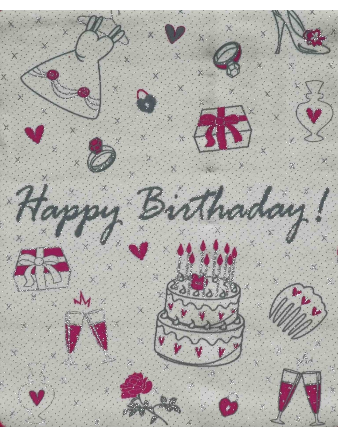 Eine Explosion von Geschenken, die am meisten von Frauen zwischen Kleidung, Diamanten und Überraschungsponälen für einen besonderen Geburtstag schön mit hellen Lurex-Garn verziert, in 2 Farben von schwarz-weißen Elfenbeinbasis mit Punkten des Lichts, die nicht verblassen wird ..