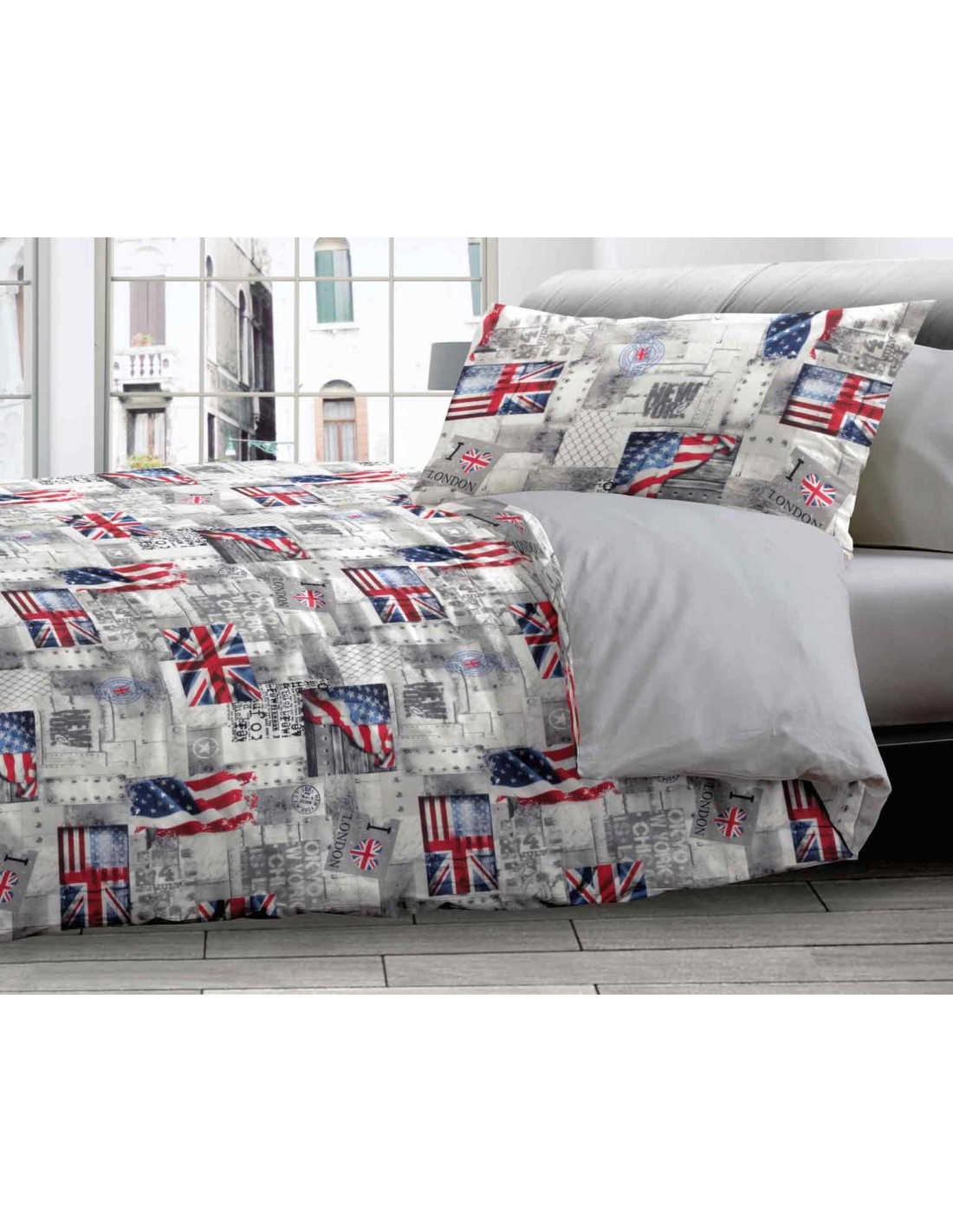 Elegant, flauschig, weich, ideal für kalte Winternächte, ist die Leinwand oben in weicher Mikrofaser mit englischen und amerikanischen Flaggen bedruckt, deren Farben sich durch helleSchattierungen abheben.