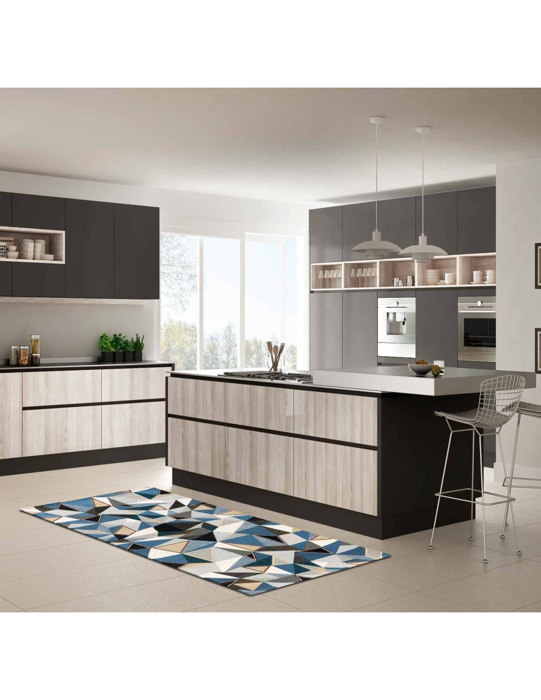Eine zarte und raffinierte Fantasie, die in vielen Größen für Ihre Küche oder Ihren Flur angeboten wird, ein originelles geometrisches Design und anmutig mit einem Cocktail aus Schattierungen verziert."