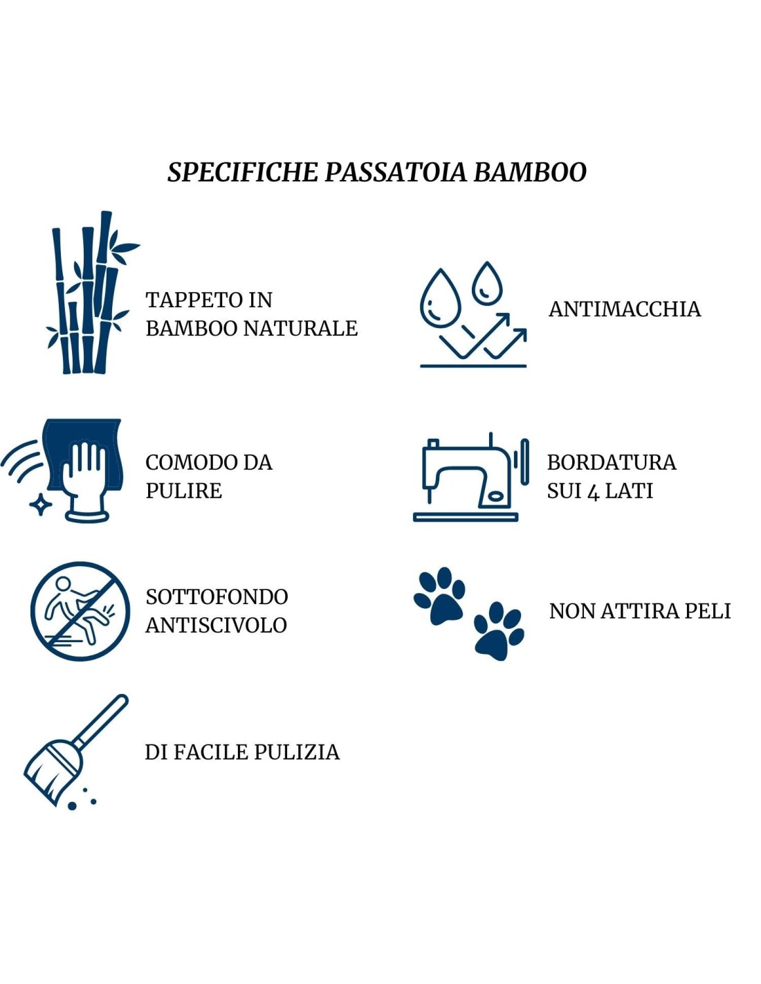 Der Teppich besteht aus Streifen aus natürlichem Bambus mit einer Breite von 15 mm, einer Dicke von ca. 3 mm, die mit Trommeln verziert sind, die dem Teppich einen natürlichen dunkelhellen Effekt verleihen, und durch einen rutschfesten Canvas-Hintergrund und eine widerstandsfähige Kantenbildung vervollständigt wird.