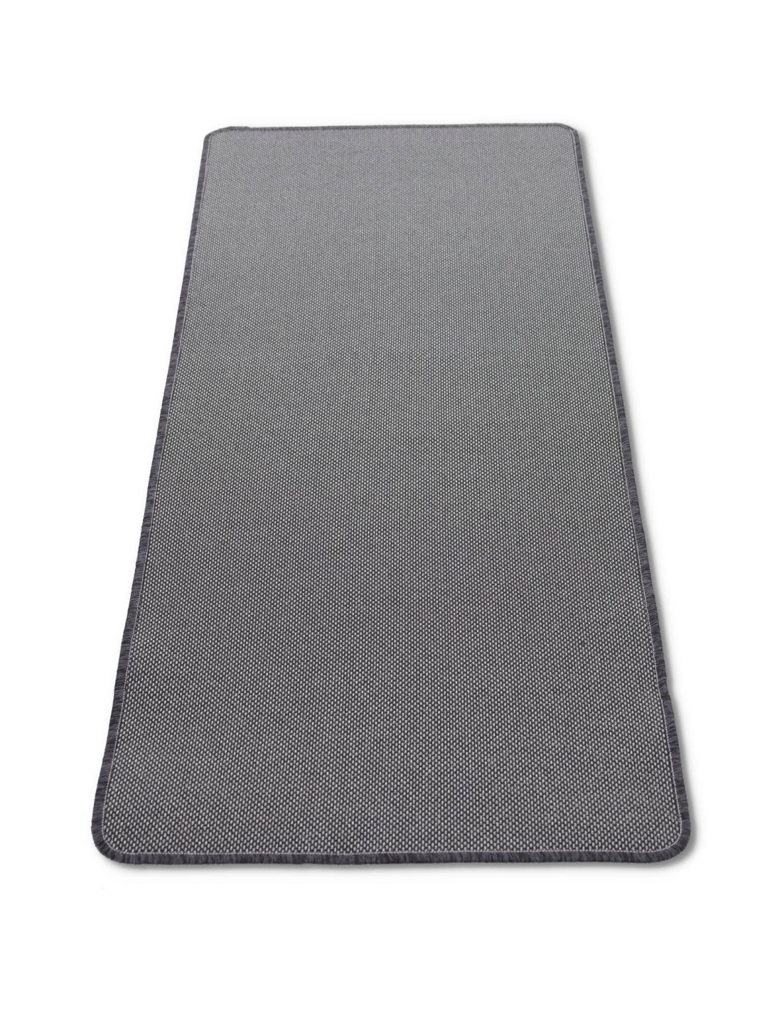 FUNKTIONEN: Dunkler, aber sehr heller Läuferteppich, dessen Leinwand und Design durch Weben mit der Verarbeitung von Jersey und der Verwendung von silbernem Lurexgarn entsteht, verleiht einen Hauch von Glanz, der sich nicht verschlechtert und gewaschen wird. Gepaart mit einer gummierten, rutschfesten Unterlage , um sie fest und stabil auf dem Boden zu machen, und mit Overlocks am gesamten Umfang mit abgerundeten Ecken versehen..