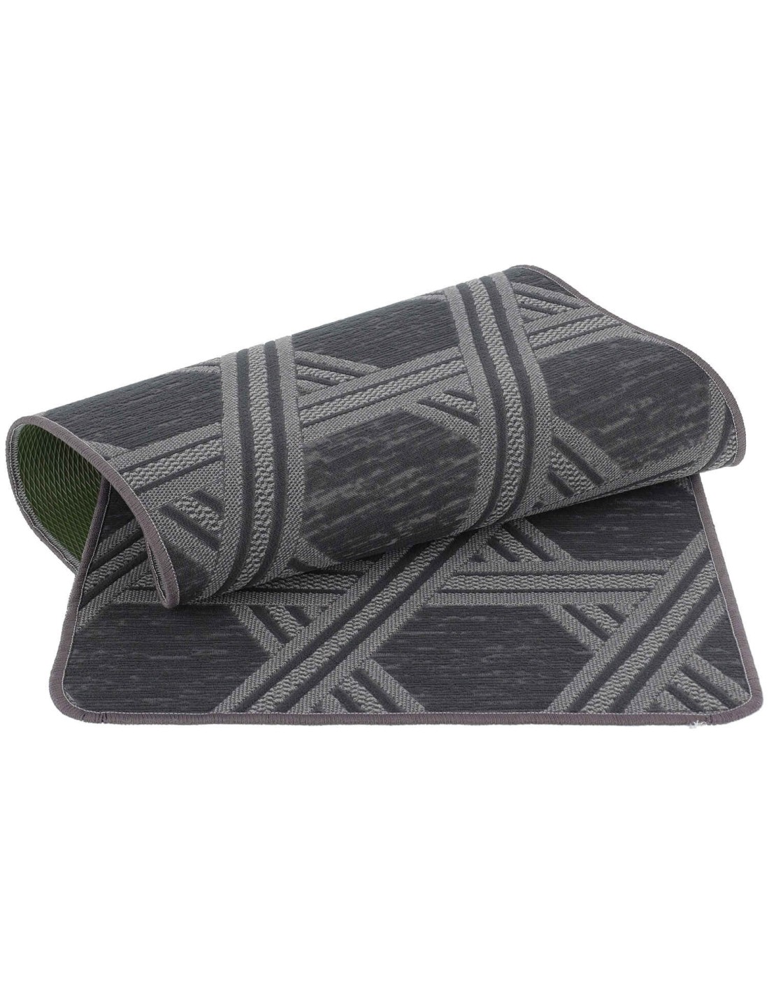 Ein praktischer, rutschfester Teppich in Grautönen und geometrischen Designs, eine Gasse mit dauerhaften Farben dank der Jersey-Verarbeitung , die das Webdesign erzeugt, das daher nicht gedruckt wird, und die Brillanz der Farben wird nicht von Waschgang zu Waschgang verblassen ..