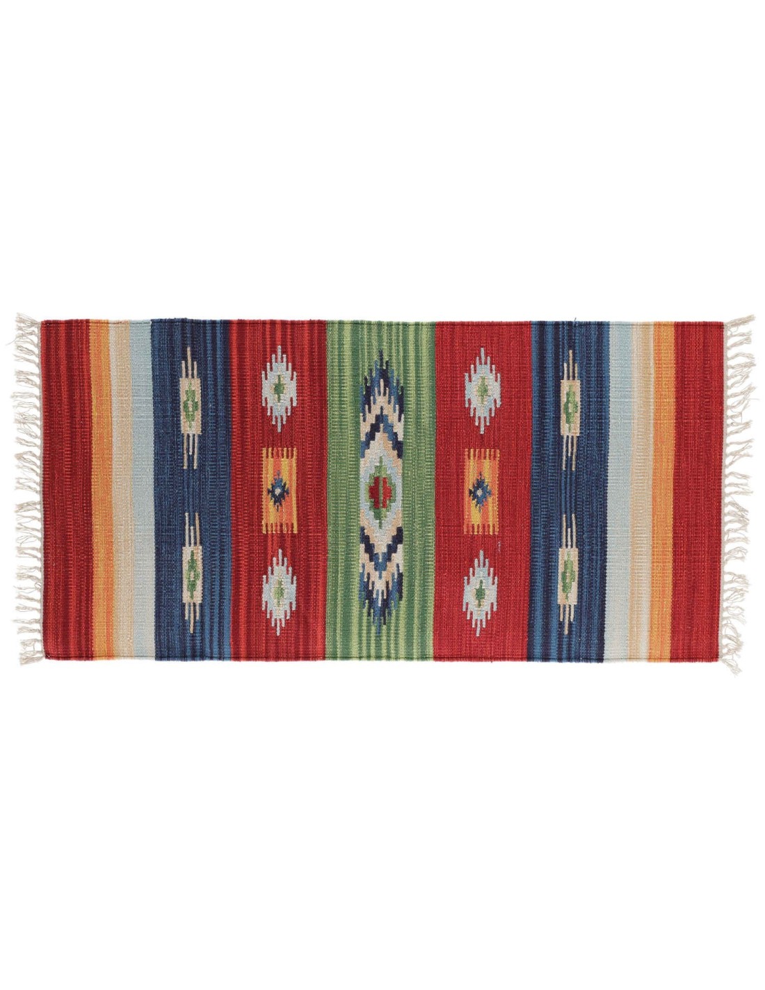 HAND WOVEN: In 100% Baumwolle, hat das Produkt auf den 2 kürzeren Seiten verschiedene Fransen von Hand geknüpft ..