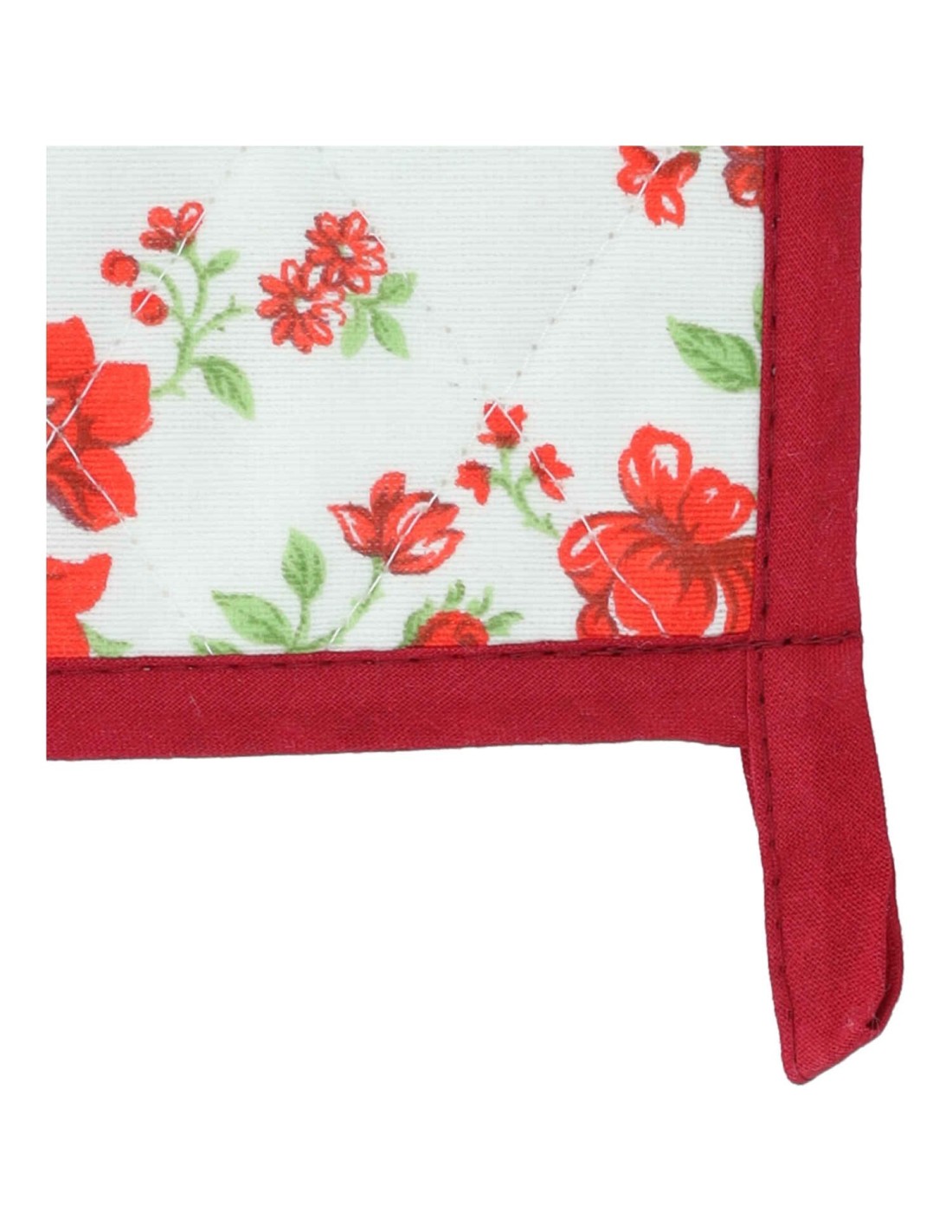 GESTEPPT: Der Topflappenhalter ist gesteppt und mit einem Gurtband in der gleichen Farbe des Drucks versehen, das alle 4 Seiten säumt und einen Haken in einer Ecke bildet, um es bequem aufhängen zu können ..