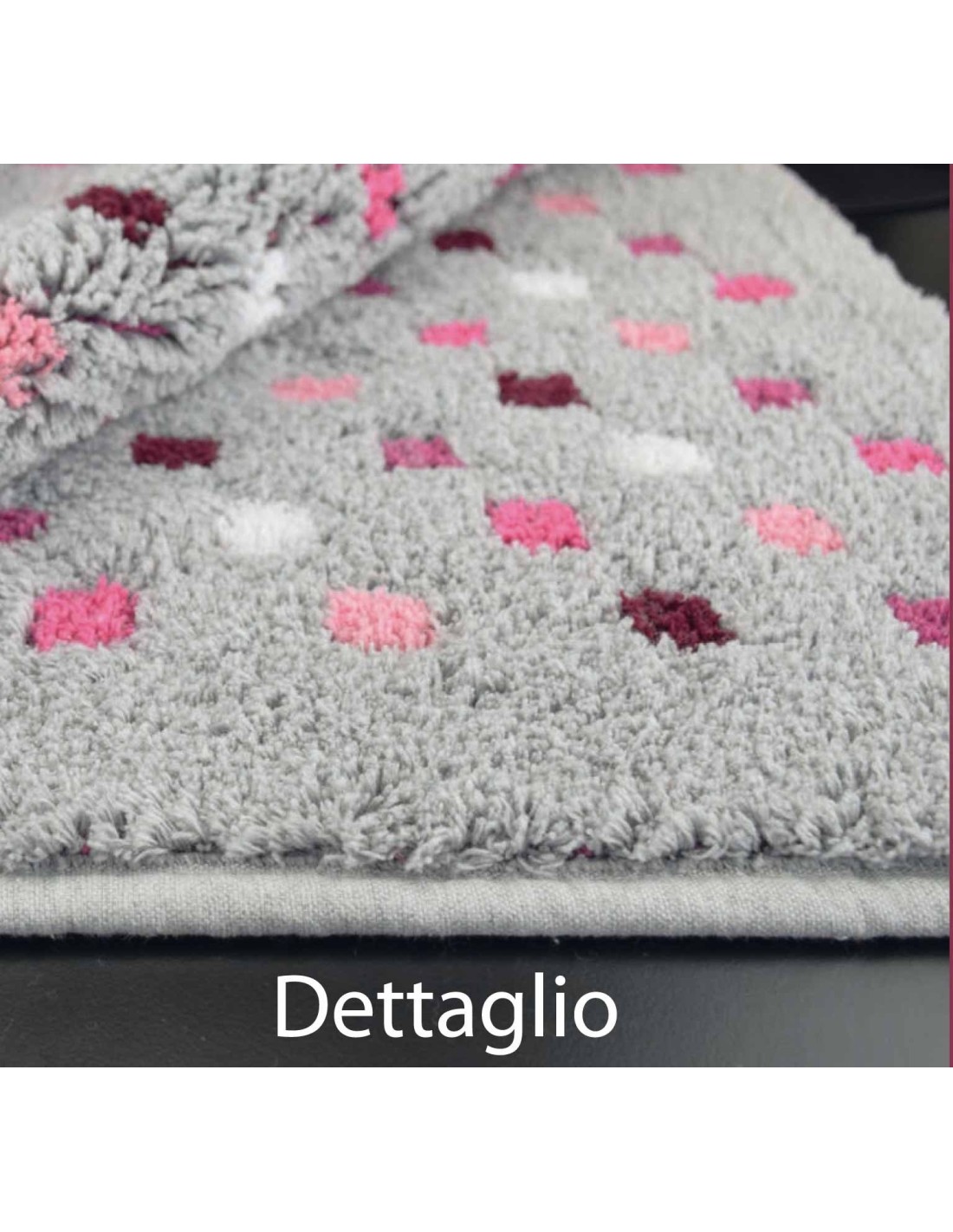 Una alfombra de algodón por la luz fondo gris donde el color viene en diferente colores en pequeños cuadrados, con un jacquard de seda, suave bajo sus pies...