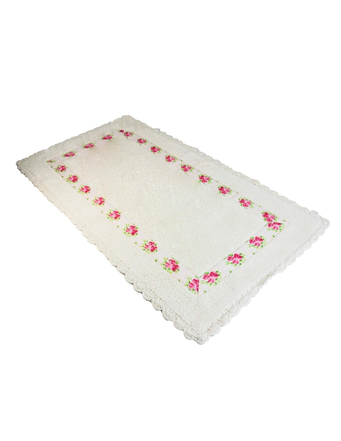 La Junta entonces se acaba con un festoneado borde aplicado a mano que parece hecho de crochet, con hilo grueso en tinte de la alfombra...