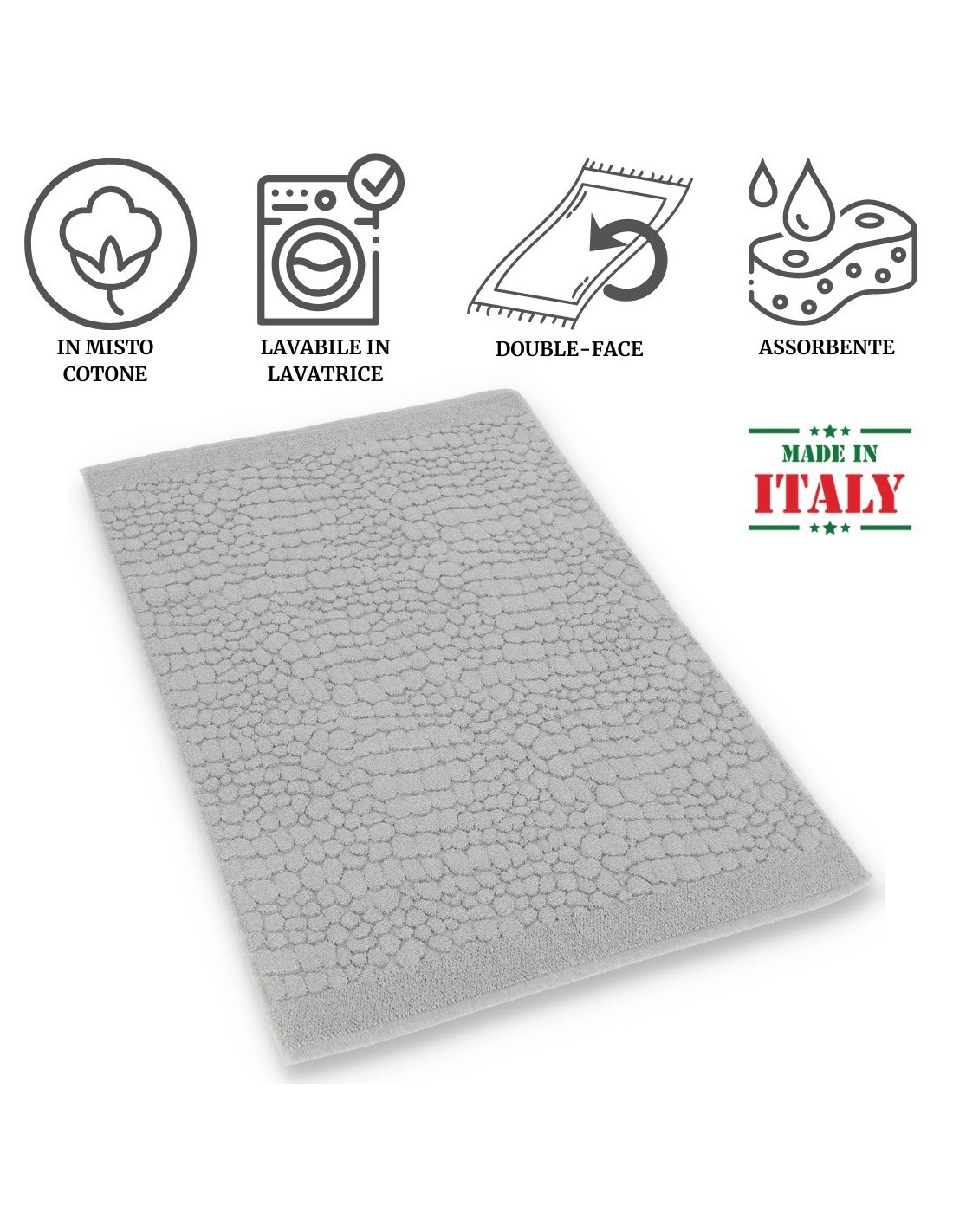 Una grande y gruesa esponja en procesamiento ricciolini constituye la base de esta práctica alfombra de baño.