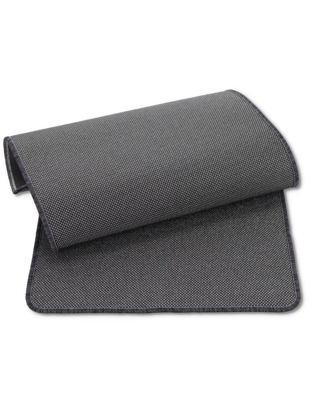 FUNCIONES: Alfombra de corredor oscura pero muy brillante cuya lona y diseño está creado en tejido con el procesamiento del jersey y el uso de hilo de lúrex plateado le da un toque de brillo que el tiempo y el lavado no se deteriorarán. Junto con una capa de subsuelo antideslizante de goma para que sea firme y estable en el suelo y acabado con overlock en todo el perímetro con esquinas redondeadas..