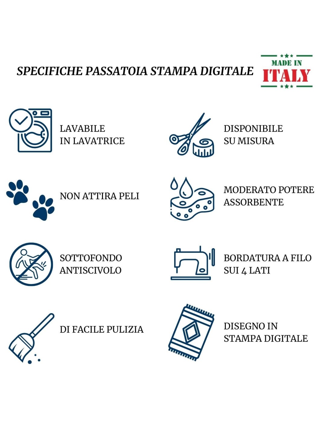 Delgada, sólo 3 mm. grueso para no entrar en el camino pero duradero y duradero, complementado por un fondo antideslizantecómodo, lavable en la lavadora y terminado con cortadores en todo el perímetro con esquinas redondeadas.