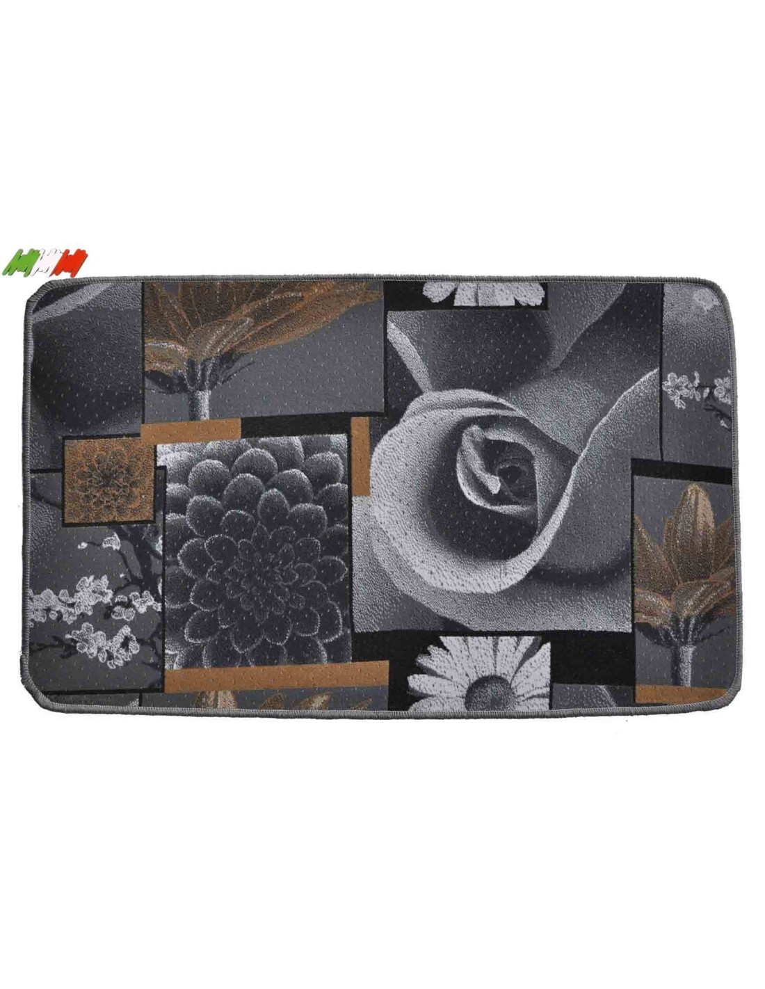 El grueso de la alfombra es de sólo 5 mm. se recorta con overlocker rebordear y completado por una arpillera cómodo y antideslizante, lavable a máquina.