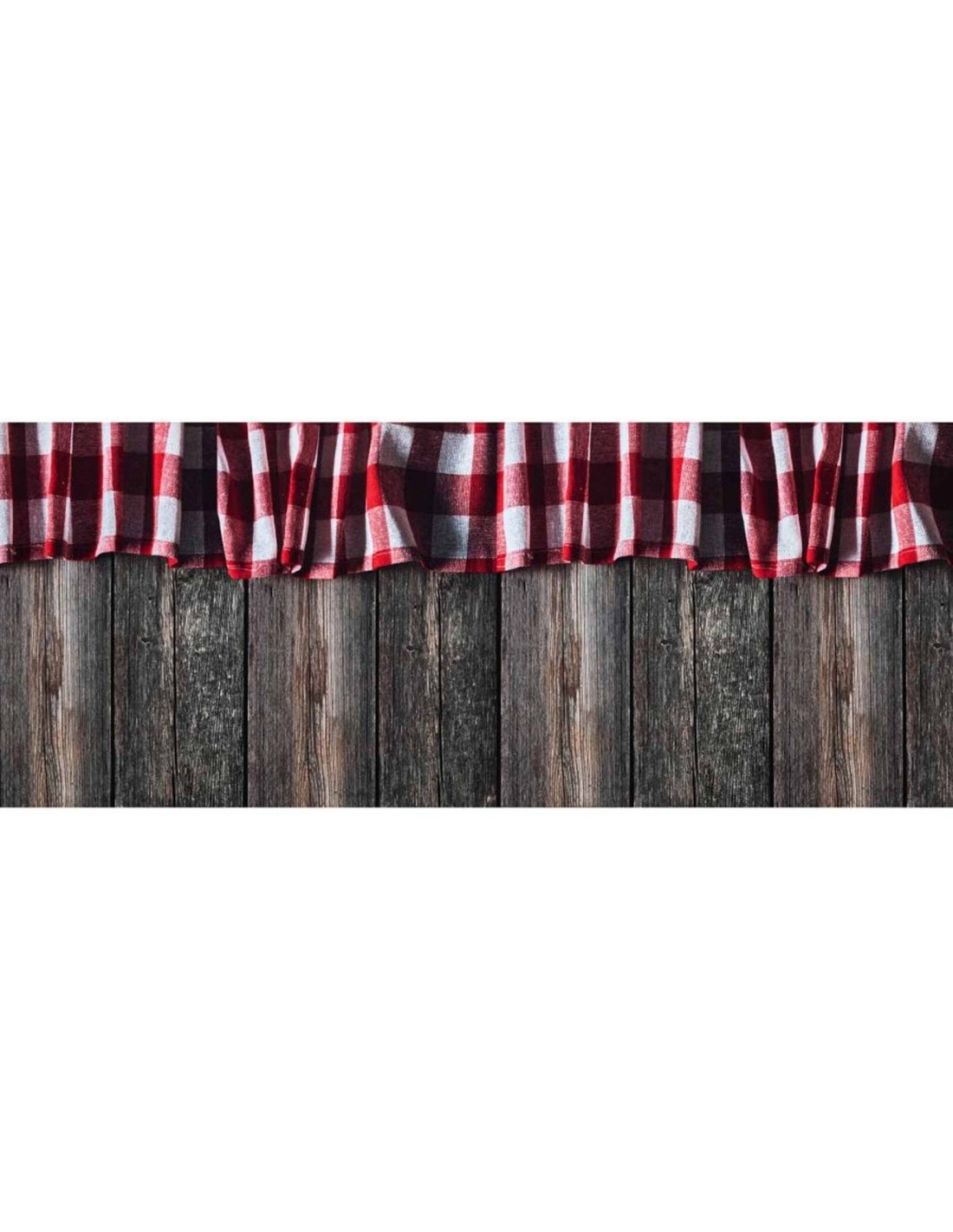 Muy original y bonito, una base de parquet oscuro donde destaca una cortina de vichy roja que enmarcará tu cocina con un toque de color yalegría..