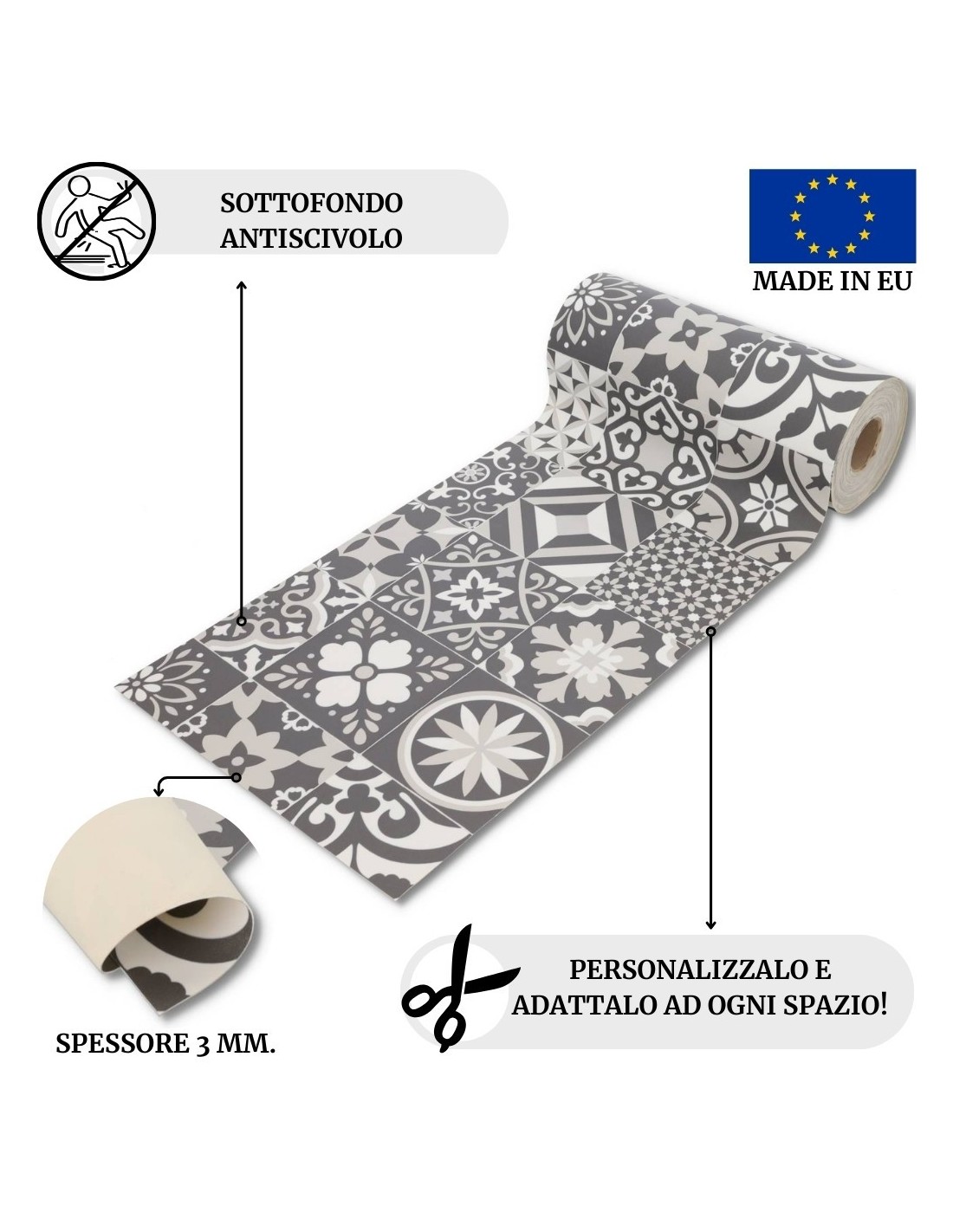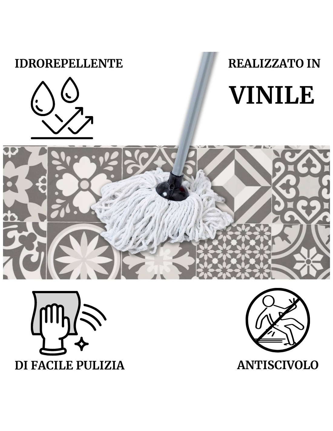 CHIC: Alfombra de mayólica de vinilo y muchos otros patrones, alfombra de pvc en muchos tamaños estándar y también por metro para darle la máxima libertad de elección con un ancho fijo de 50 cm.