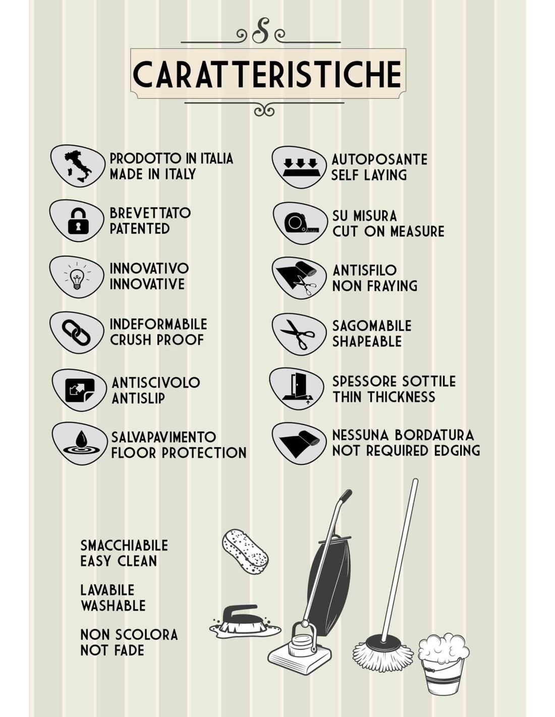 No está impresa, su color permanece inalterada como sus características, lava después de lavado, el material utilizado es ablandamiento vendió al corte y no necesita ribete. Una calidad ideal para hacer medición incluso en casa con una simple tijera o cuchillo para caber alrededor de cada rincón o protuberancia.
