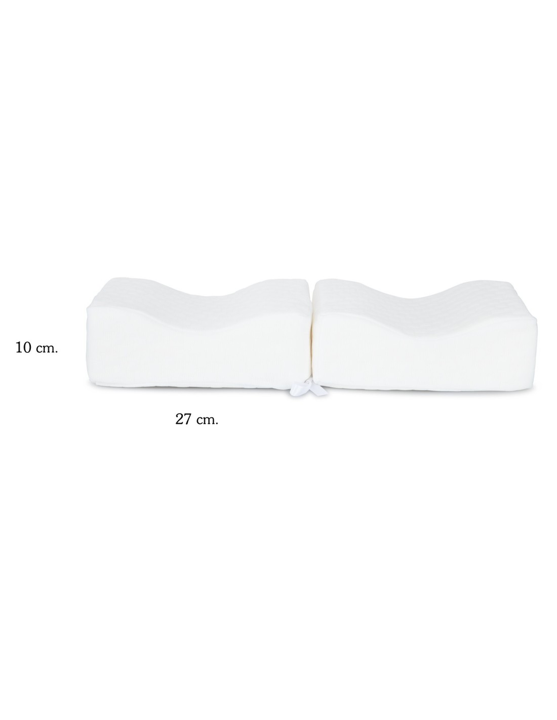 La almohada consta de 2 unidades separadas, ambas equipadas con 2 cordones x lado que le permitirá atarla o dividirla de acuerdo con el uso que le dará..