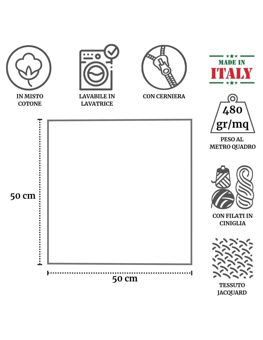 Funda decorativa disponible en tamaño 50x50 cm. sin y con relleno.
