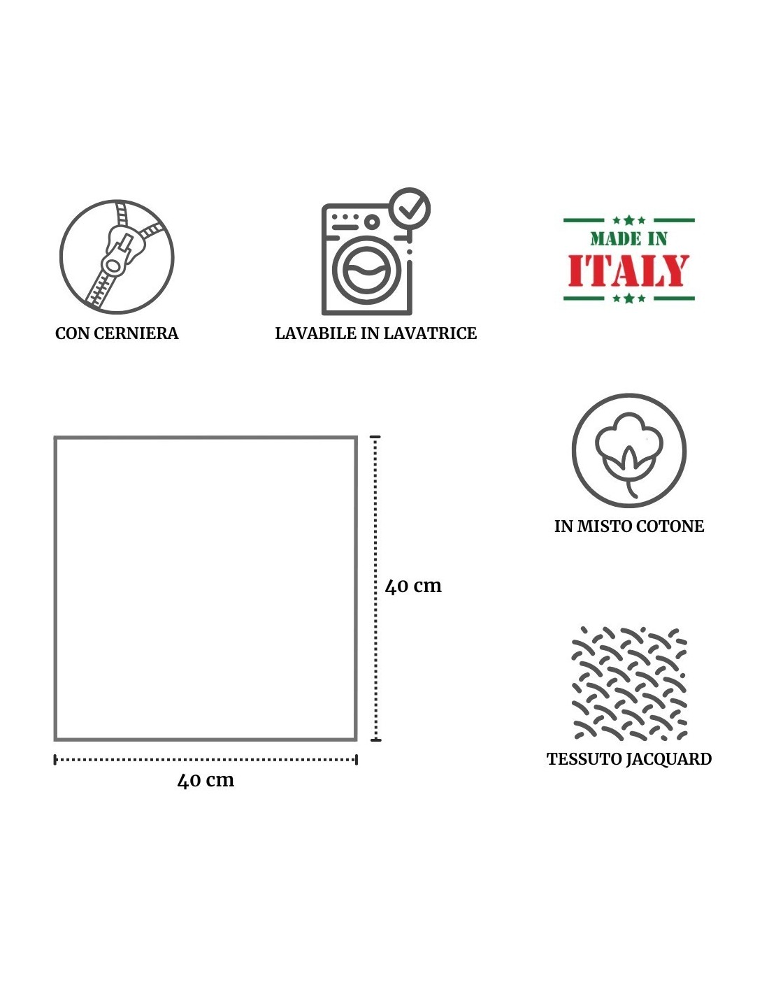 CARACTERÍSTICAS: La funda mide 40x40 cm. Equipado con una práctica cremallera para quitarlo fácilmente. No está equipado con acolchado, pero puedes encontrarlo y comprarlo por separado en nuestra tienda..