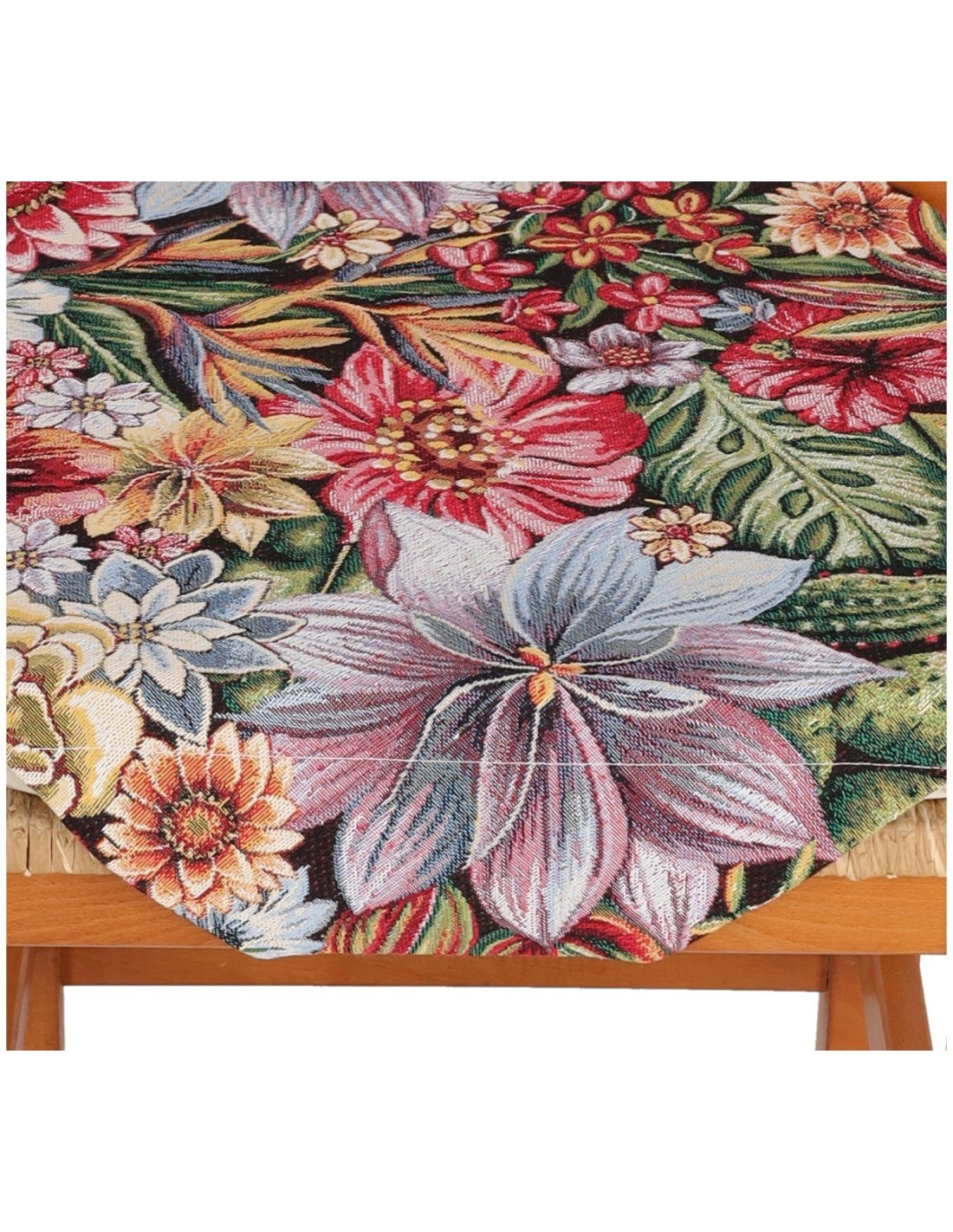 TROPICAL: Un tejido jacquard gobelino de la línea excelsior donde el diseño floral nace directamente en el tejido, no estampado. Una mano densa y consistente caracterizada por un buen porcentaje de hilo de algodón y una alta definición del diseño..