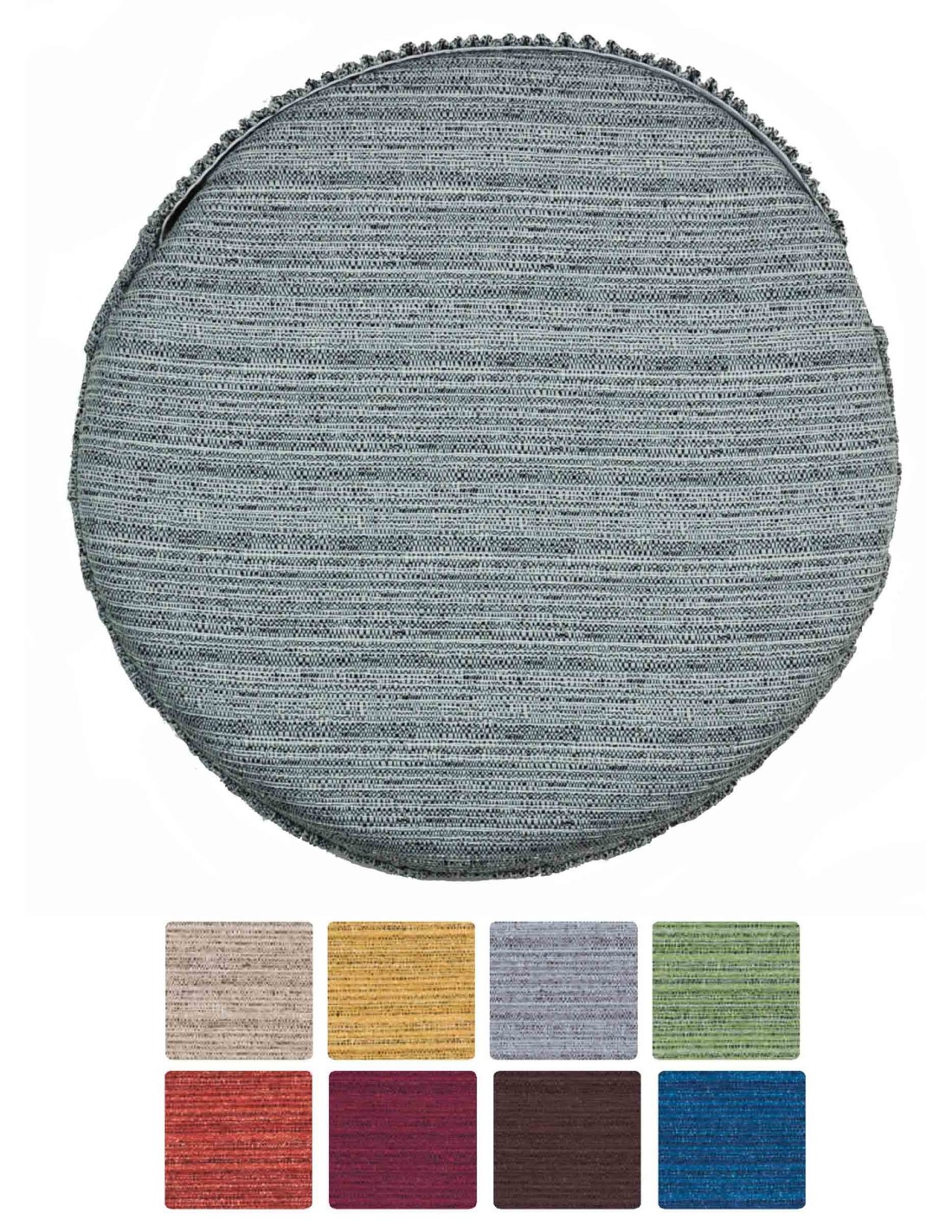 Tamaño del cojín diámetro cm. 38 equipados con acolchado de 4 cm de altura. y disponible en múltiples colores de su elección.