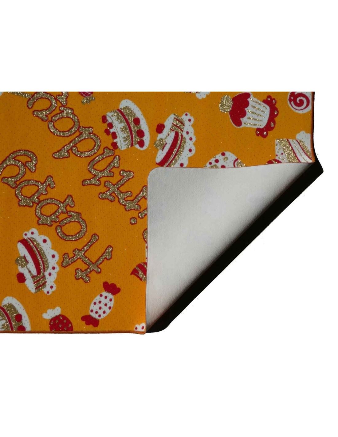 Una fantasía eterna que puedes usar en cada cumpleaños hecha aún más rica y brillante gracias al uso de hilos lurex, la fantasía no se imprime sino que nace en un telar con el procesamiento del gersey y por esta razón no tendrá cambios con el tiempo..