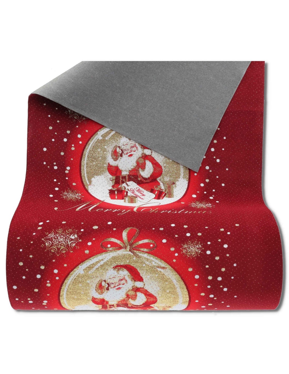Corredor navideño con sustrato recubierto de resina y borde crudo. La escritura auspiciosa puede ser Feliz Navidad o Feliz Navidad en entrega aleatoria para una unidad, alternando en varias longitudes.