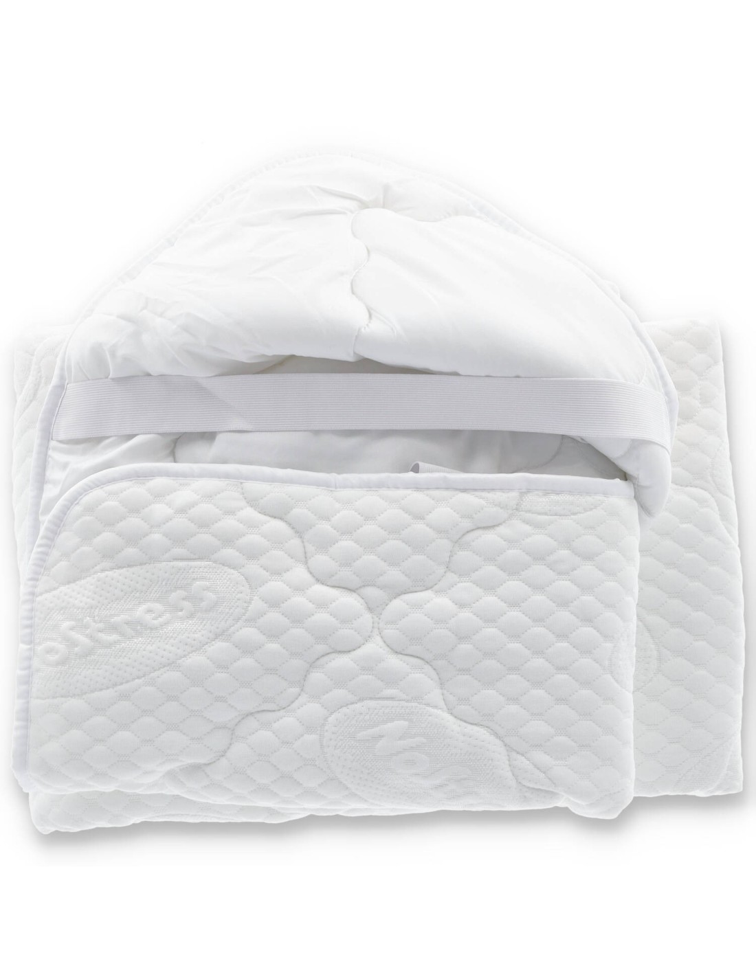 El cubrecolchón DOUBLE NO STRESS colocado entre la sábana y el colchón garantizará una mayor sujeción, transpirabilidad y comodidad además de permitirle proteger su colchón del desgaste dándole mayor suavidad y un toque de calidez extra envolvente..