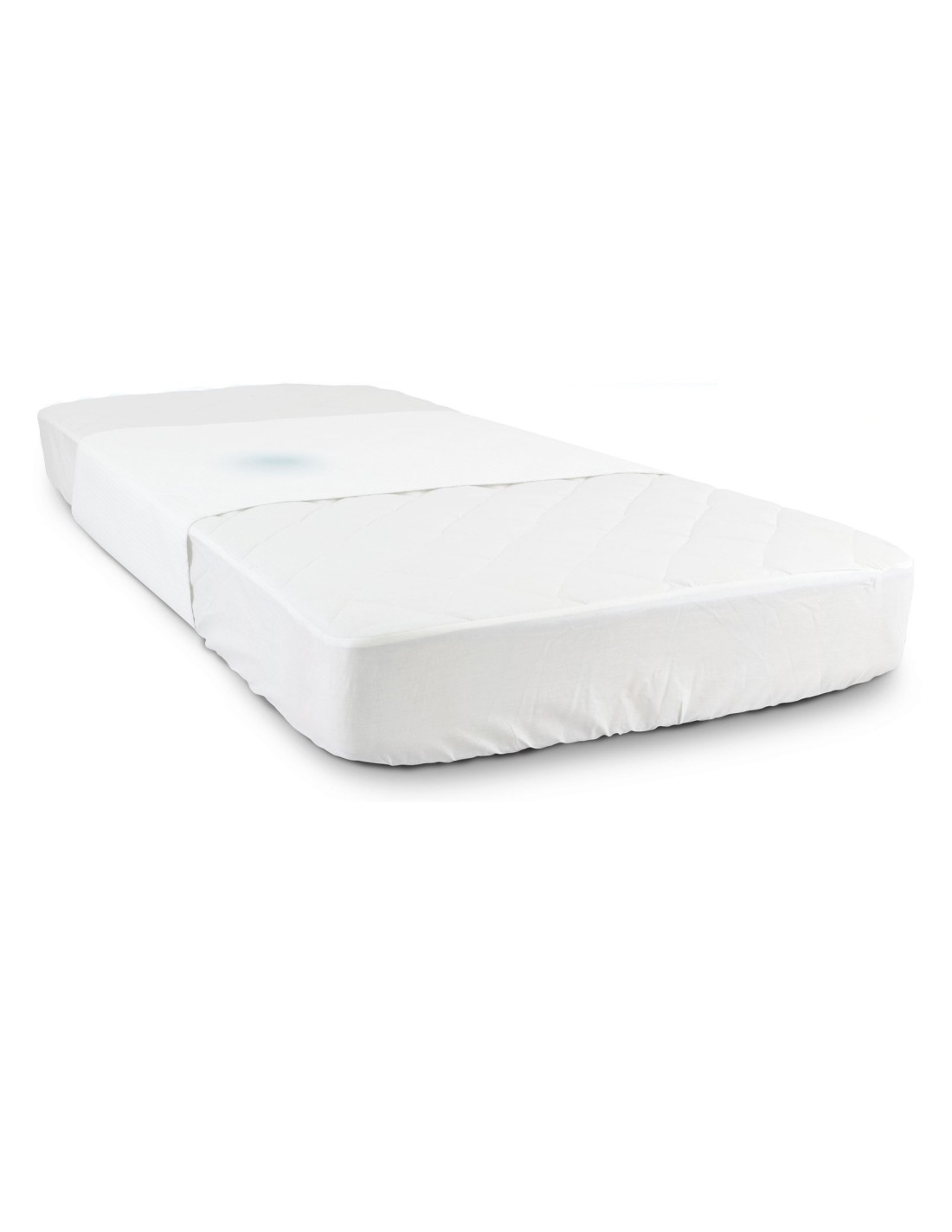 Puedes colocar el empapador sobre la cama de lado a lado, recogiéndolo bajo el colchón a la altura de la pelvis, para proteger solo la zona central, garantizando al mismo tiempo la protección de los laterales del colchón.
