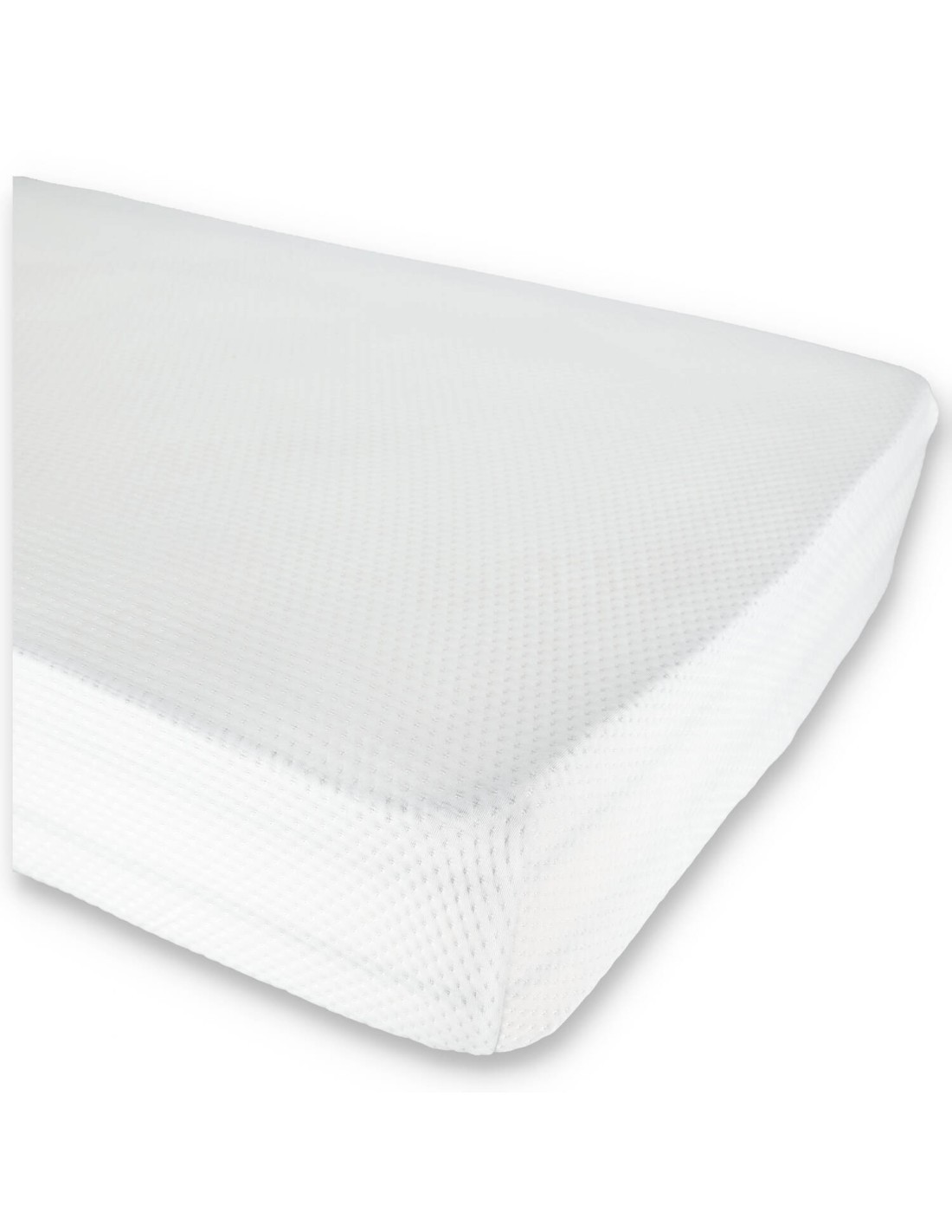 La funda del colchón está hecha de tejido bielástico 100% poliéster, se produce íntegramente en Italia y es antiácaros e hipoalergénica..