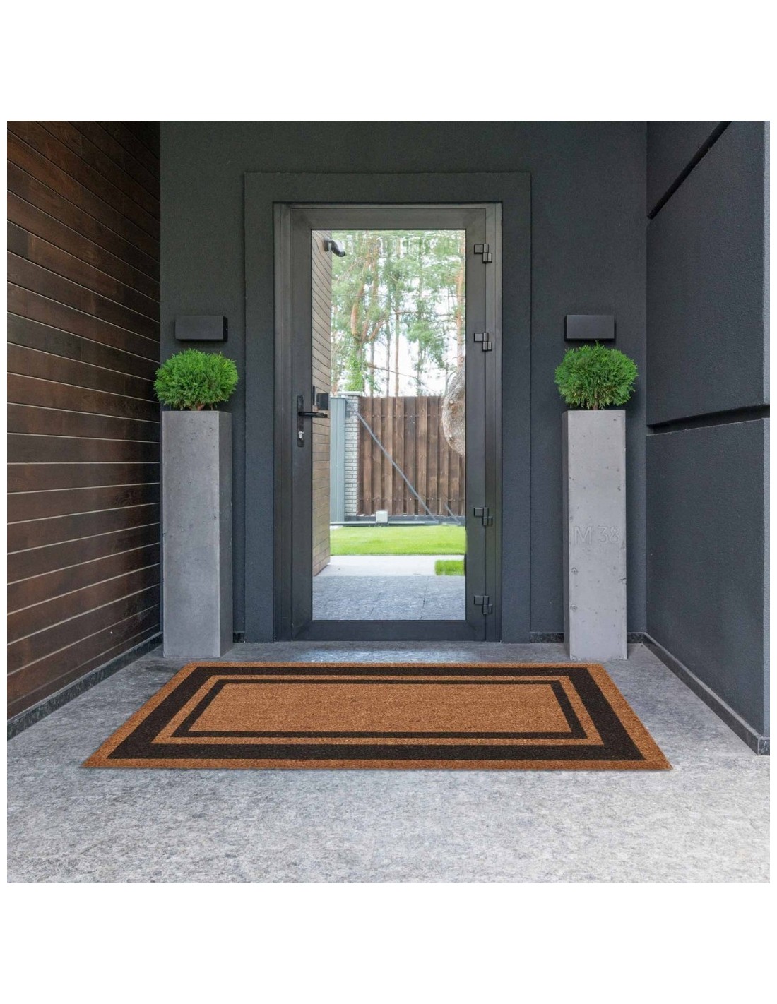 Felpudo en coco natural de estilo clásico. Caracterizado por el color natural del coco adornado con un recuadro doble de color.