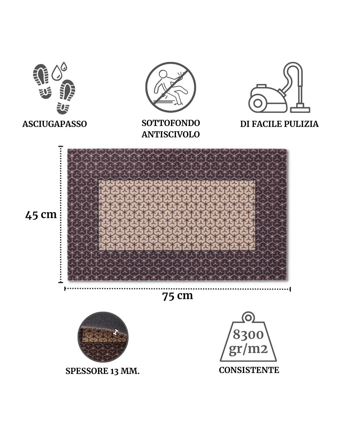 Alfombra de entrada práctica y robusta ECCELSIOR de medidas 45x75 cm..