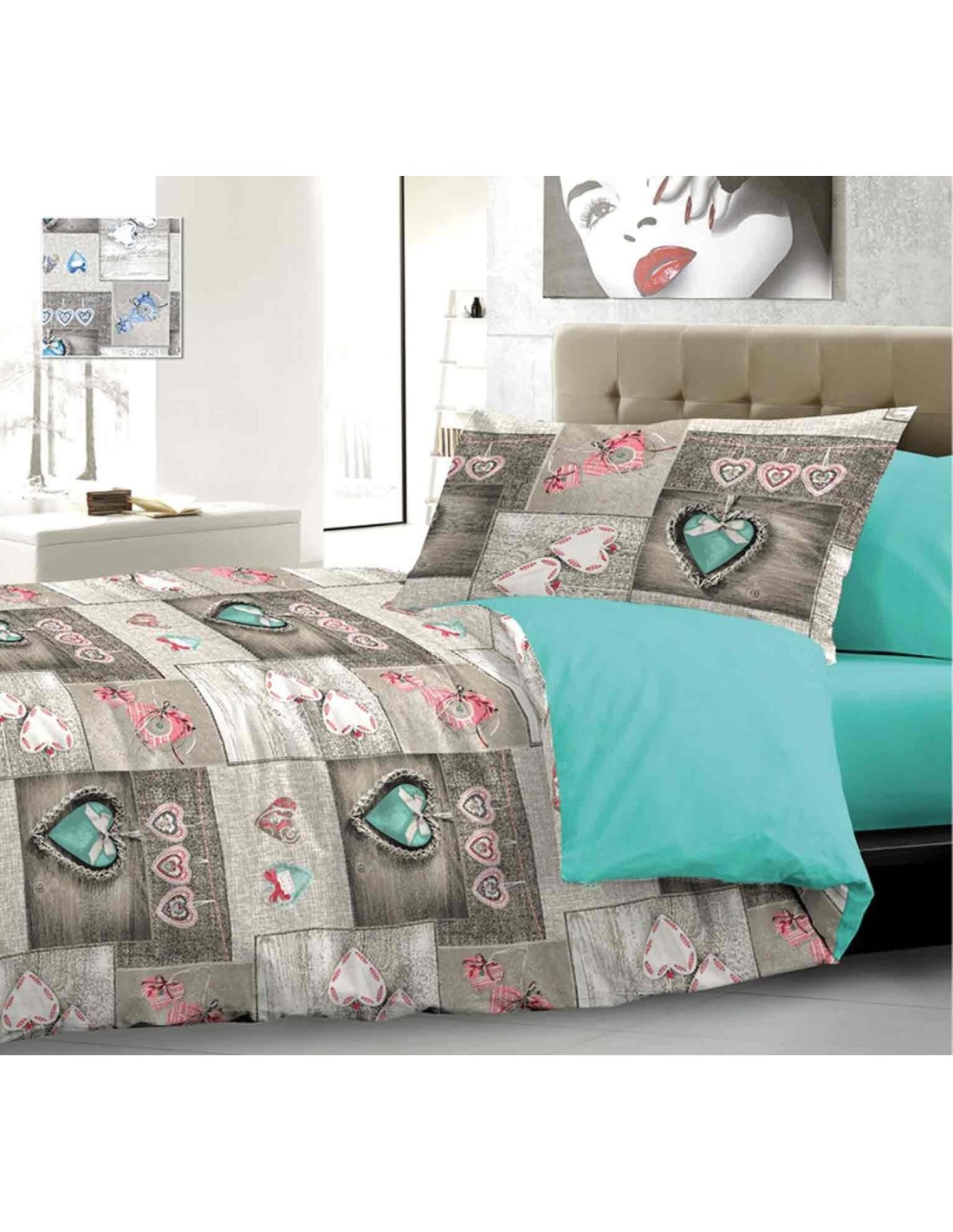 Este atractivo estampado se encuentra en ambos lados de la funda del edredón y de la almohada.