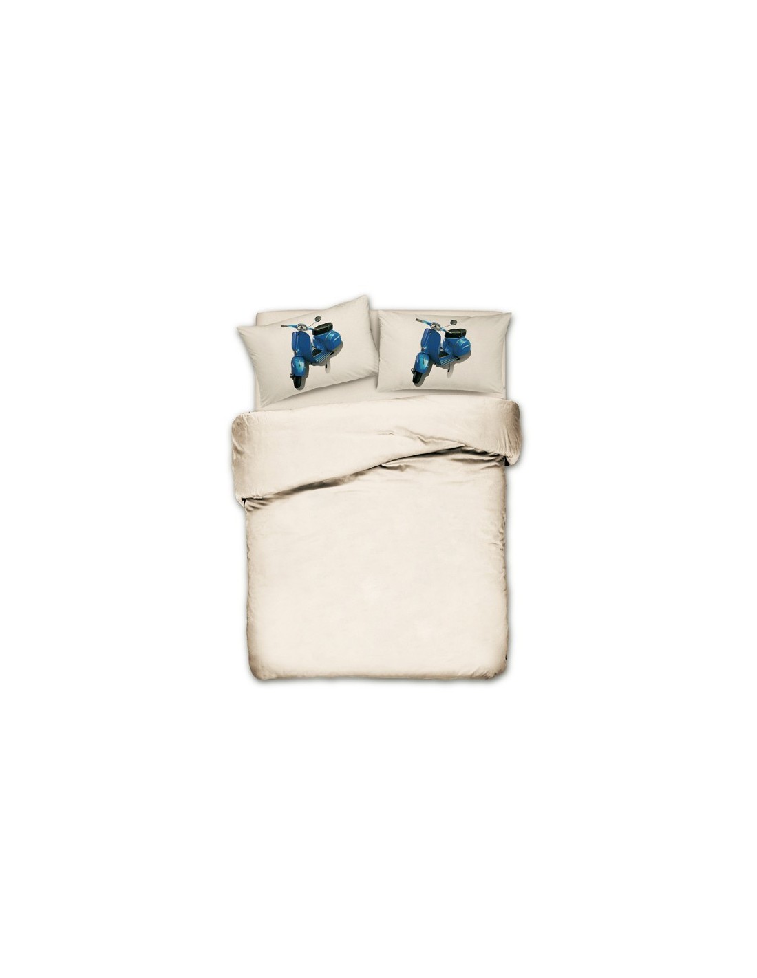 Se ofrece en un color solamente, la sábana bajera y fundas de almohadas son de color blanco cremoso e impresión digital está presente en un lado de la funda de almohada.