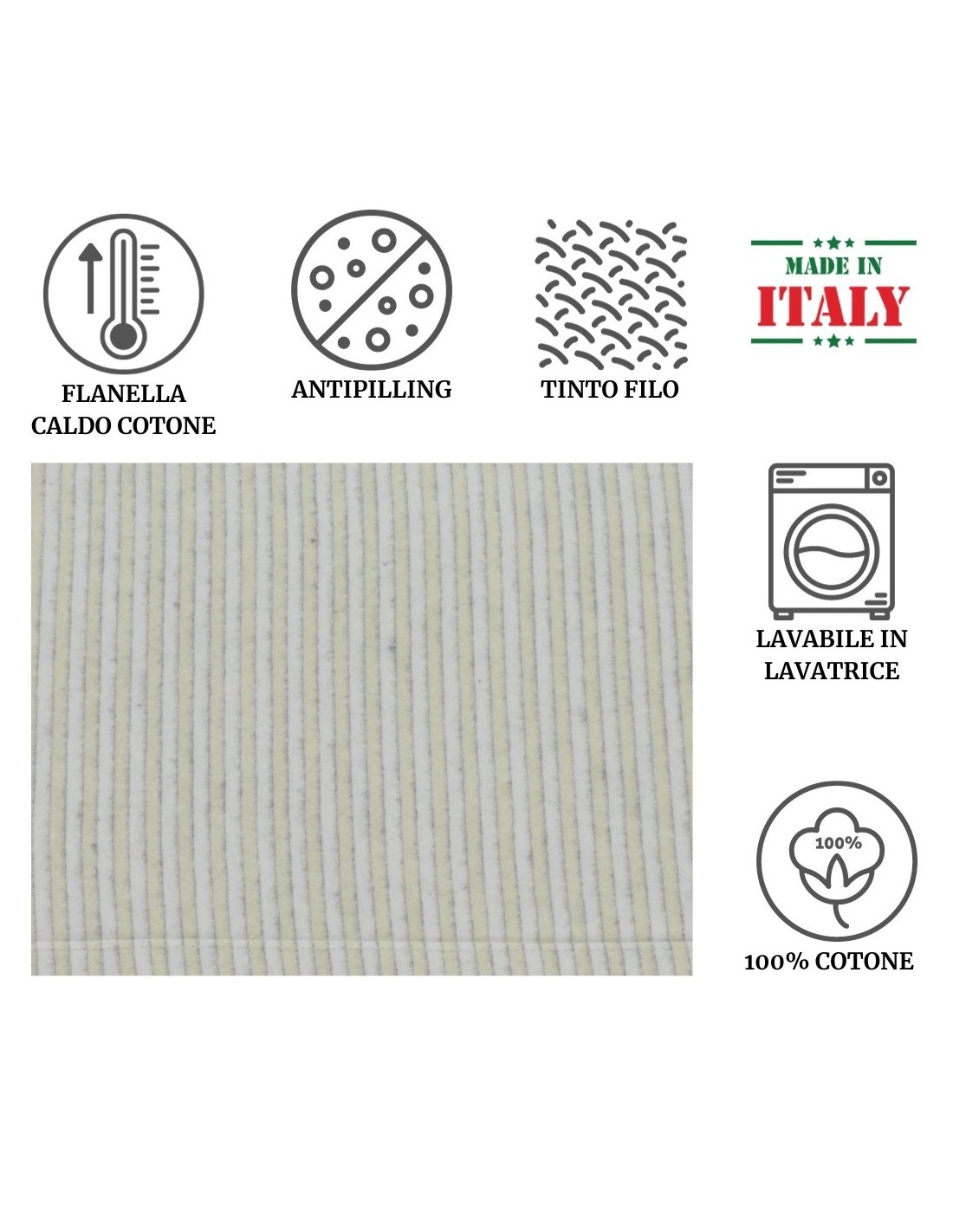 FUNCIONES: Las sábanas fabricadas en Italia en puro algodón de franela, suave al tacto y gracias al cálido algodón son ideales para la temporada de frío envolviéndote con su calidez. Muy bien adornado con un patrón de rayas..