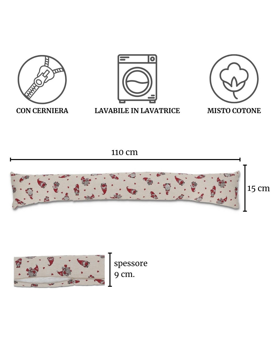 Un bonito diseño con muchos gnomos y corazones para proteger tu entrada del frío y las corrientes de aire..