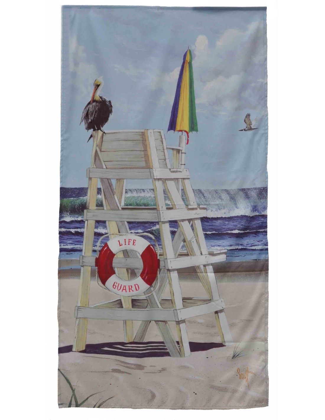 La impresión está presente solo en un lado de la toalla de playa.