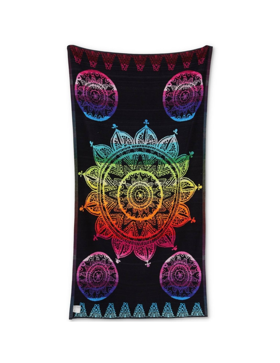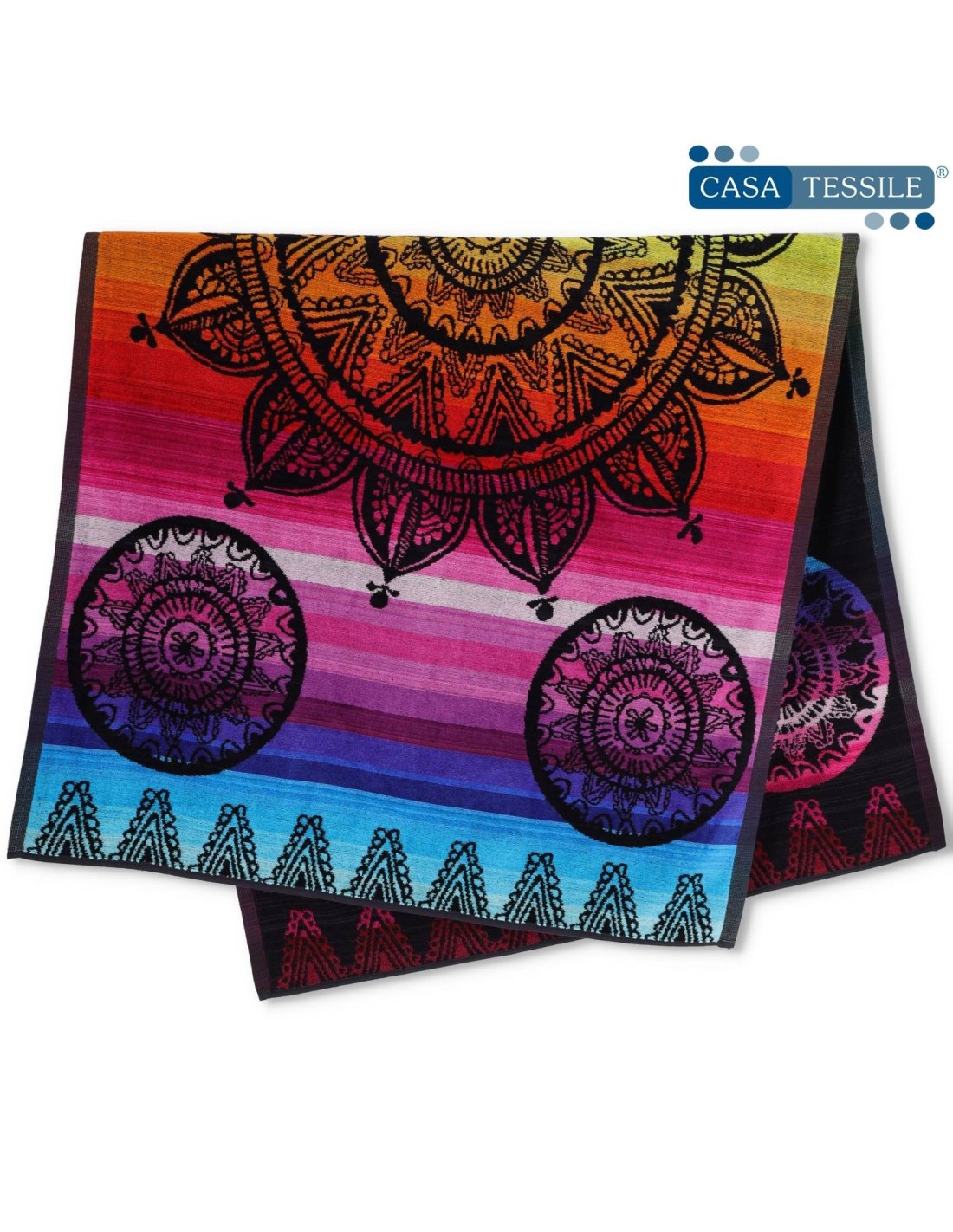 DEHLI: Toalla de playa de rizo jacquard 90x165 cm. con colores vivos y vivos que destacan combinados con el negro para crear un mandala..