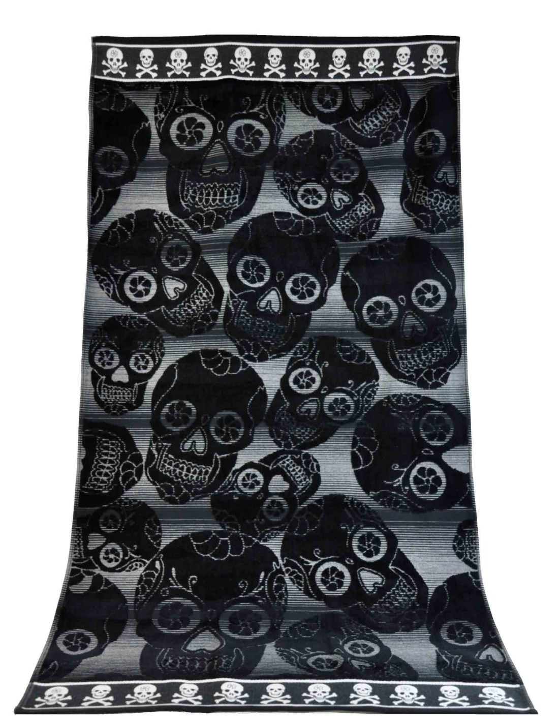 Los dos lados estrechos están adornados con una banda bordada, siempre con una cadena de calaveras y con los inevitables huesos cruzados.
