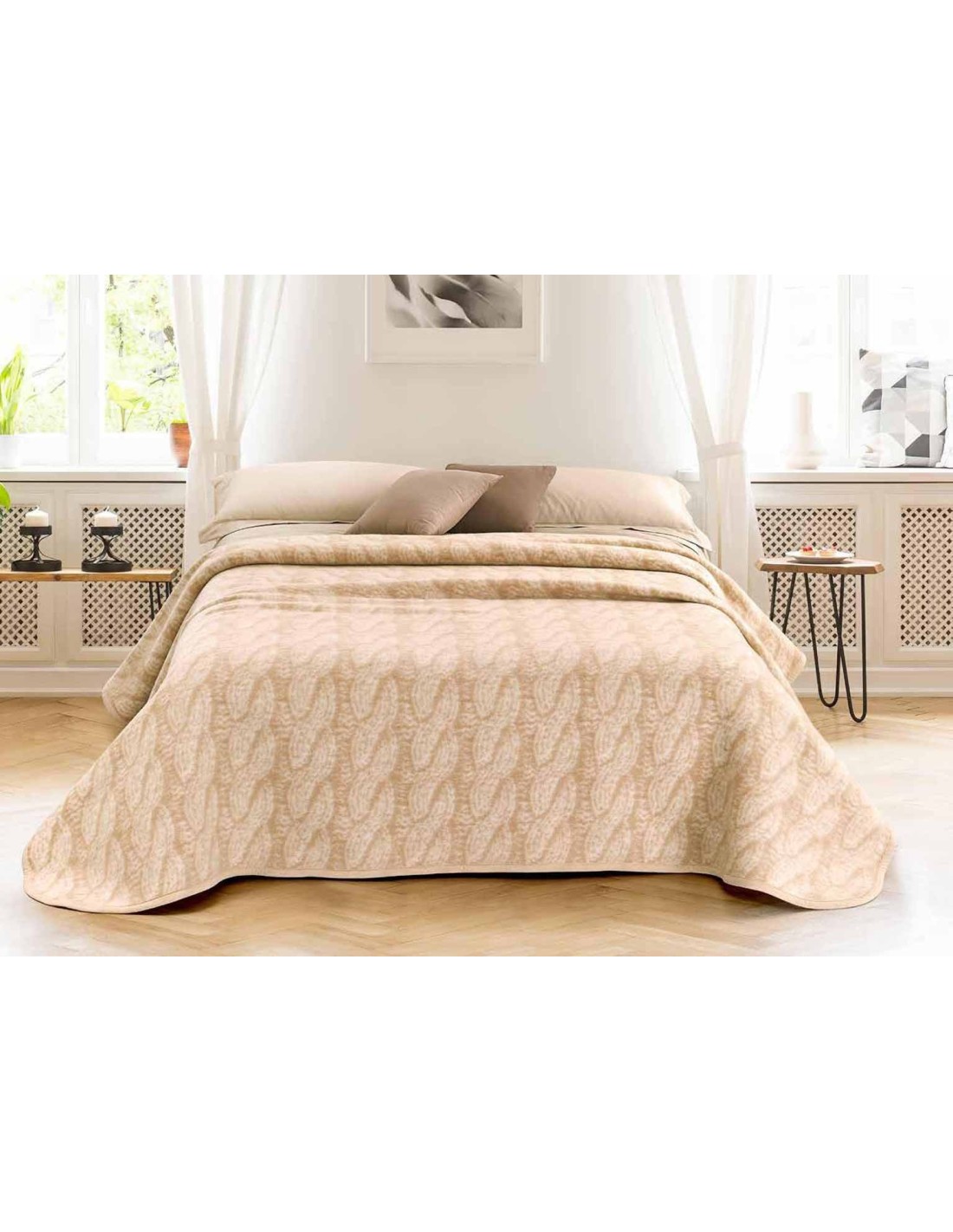 TRENZAS: Manta mezcla de lana de doble cara..