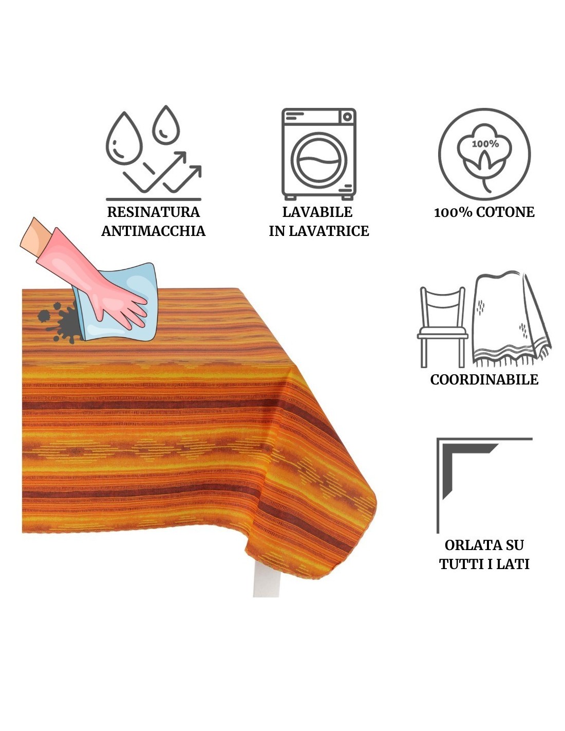 Un mantel con el compromiso adecuado entre algodón y cera, en realidad es de algodón puro pero gracias al tratamiento de resina en la superficie, un pase de esponja será suficiente para limpiarlo y si esto fuera poco también puedes lavarlo en la lavadora y plancharlo hacia atrás. El recubrimiento de resina lo hace menos sucio y poco absorbente..