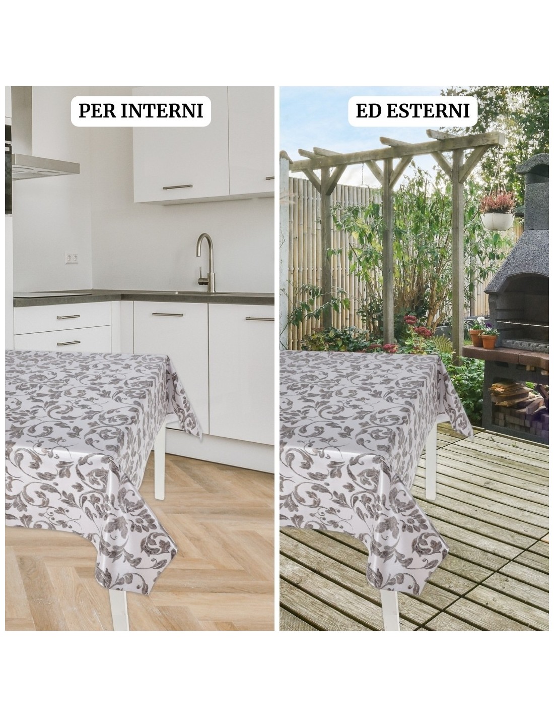 FUNCIONES: Mantel producido íntegramente en Italia compuesto por una hoja de vinilo estampada y laminada con tela no tejida. Se vende sin acabado, no se extrae, sin rematar en muchos tamaños estándar e incluso por metros para un mantel a medida o para mesas más grandes..