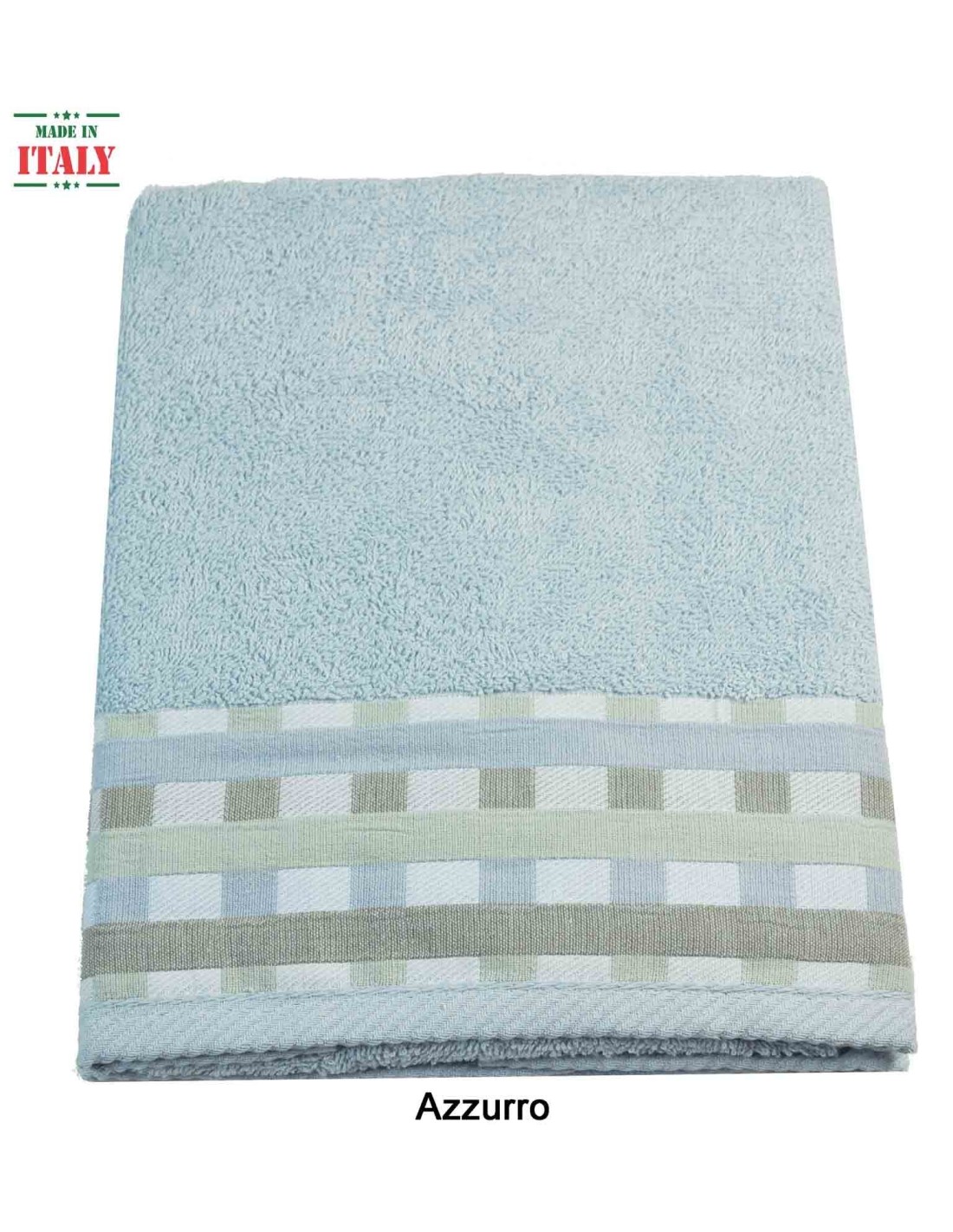 toallas 100% algodón del buen peso clásico creado por el proceso esponja ricciolini y adornada por una banda de cuadrados de la tela del telar jacquar.