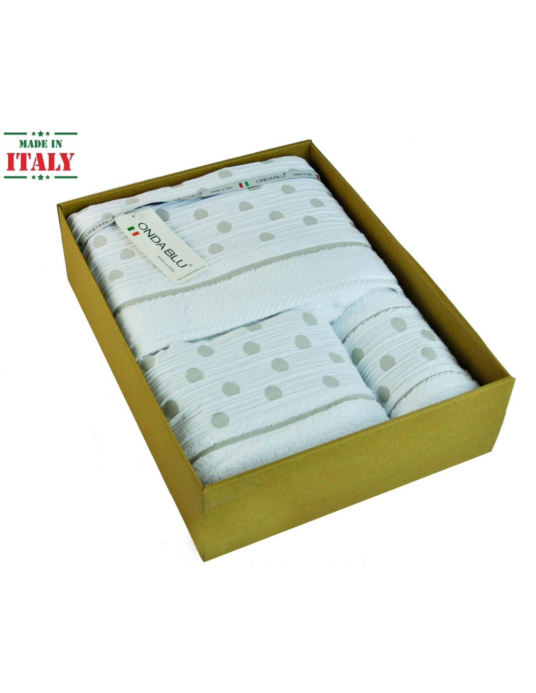 Ospite 40x60 cm. Asciugamano 60x100 cm. Telo 100x150 cm.